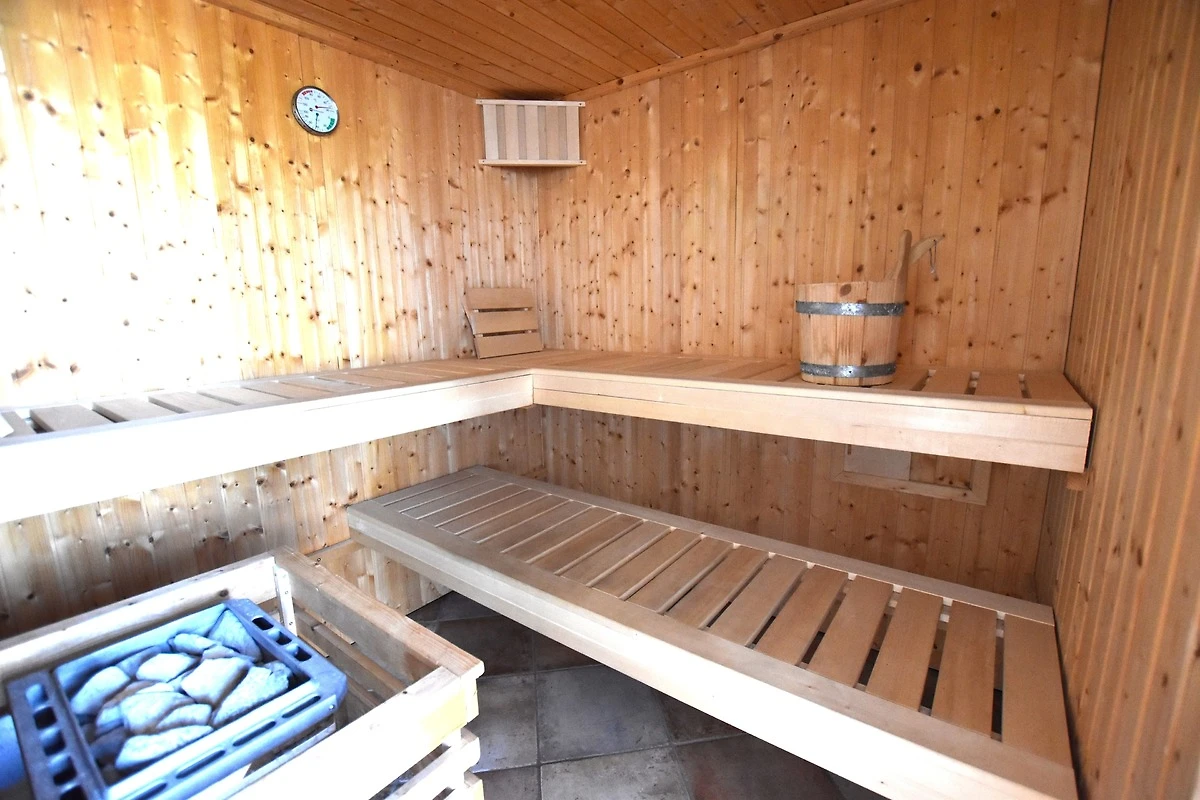 Sauna: Sauna für 3-4 Personen, Relax-Liegen, Fussbodenheizung, separates Duschareal, angrenzendes WC