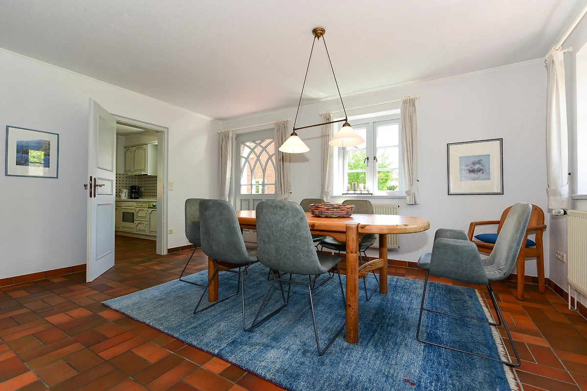 Der einladende Essbereich und die gemütliche Sitzecke machen das Wohnzimmer zum perfekten Ort für entspannte Fernsehabende oder gemeinsame Mahlzeiten.