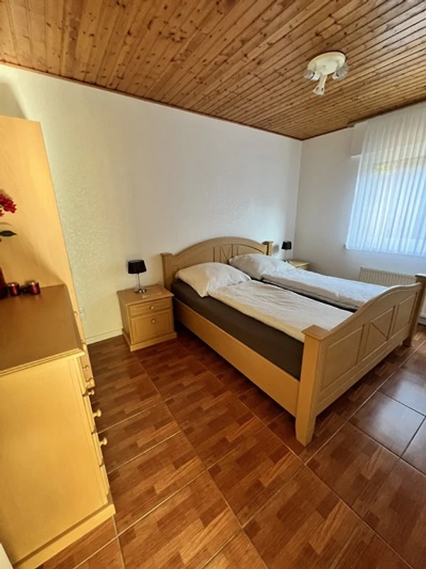 Ein Schlafzimmer mit Doppelbett und ein Badezimmer sorgen für zusätzlichen Komfort.