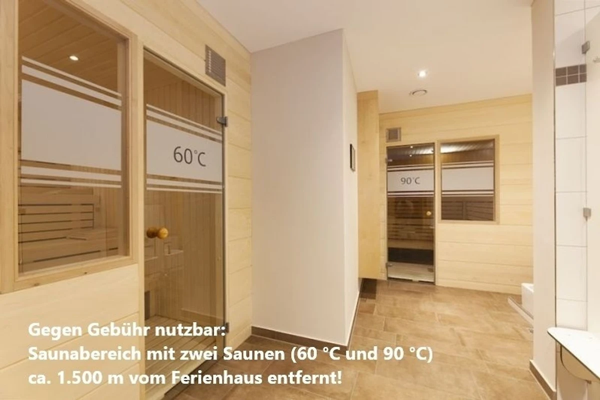 - Saunabereich im Hotel Clemenswerther Hof mit zwei Saunen (60°C und 90°C) / 1.500 Meter vom Ferienhausgebiet / Gebühr 12,50 EUR pro Person pro Tag inkl. Wasser & Tee / Handtücher und ggf. Bademantel sind mitzubringen
