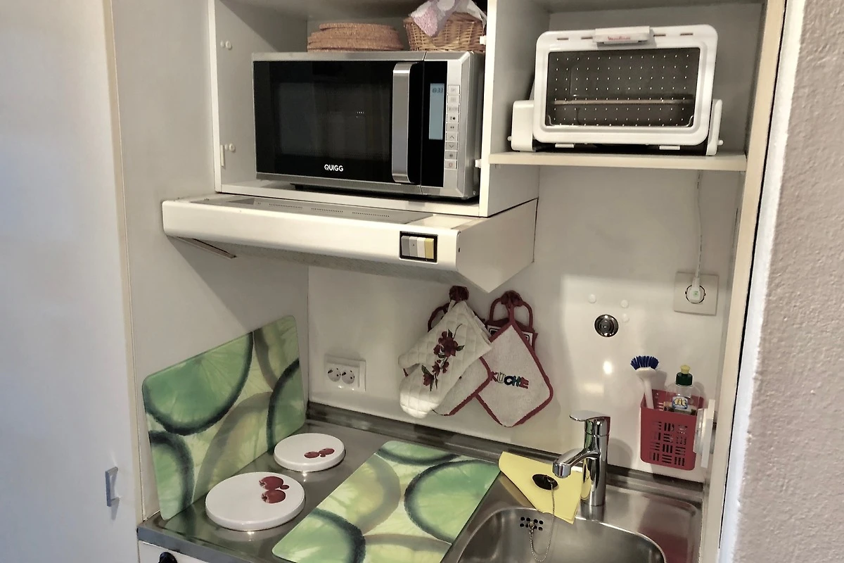 Die Wohnung ist modern, hell und freundlich eingerichtet und verfügt über 1 Wohn-Schlafraum mit 2 Einzelschrankbetten, einem Schlafsofa, einer Sitzgruppe, einem separaten Esstisch, Pantryküche und Vollbad.