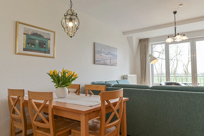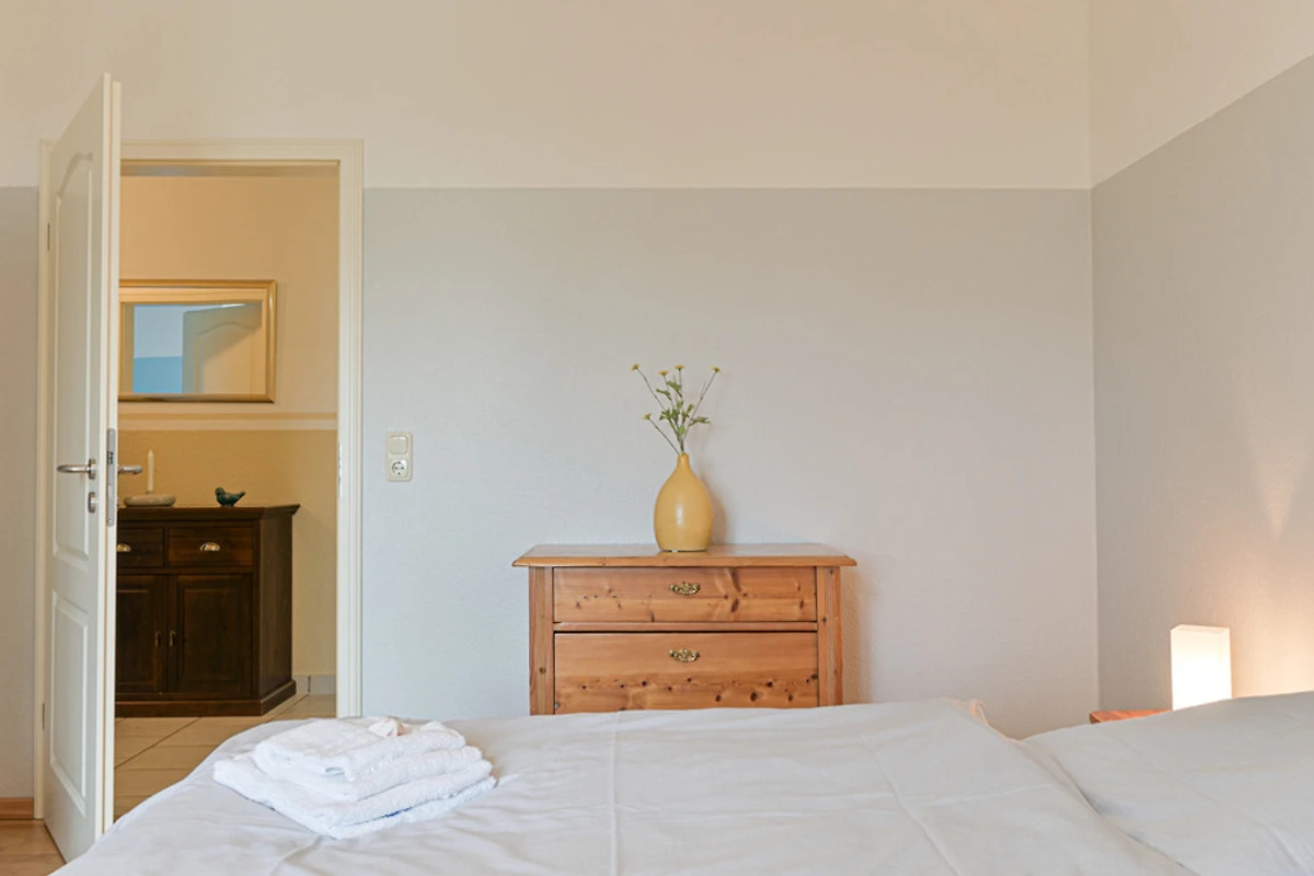 Sie zählt somit zu unseren grösseren Ferienwohnungen. Ein geräumiges Wohnzimmer, ein grosser Flurbereich sowie 2 Schlafzimmer mit 5 Betten und eine schöne Einrichtung sorgen hier für ein ganz besonderes Ambiente.