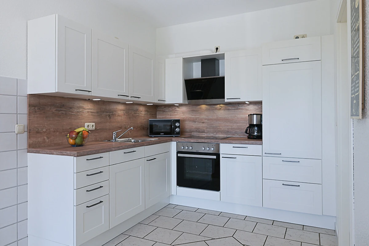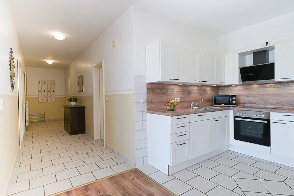 Sie verfügt über eine Grösse von 86 qm und ist mit einer kompletten Küchenzeile ausgestattet. Vom Geschirrspüler, über Mikrowelle, Backofen bis hin zum Mixer ist alles vorhanden.