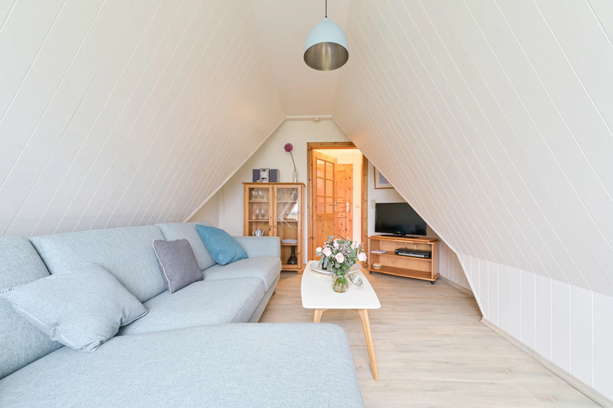 Im Wohnzimmer finden Sie einen Flachbidschirm, DVD, Sat-TV, Stereoanlage.