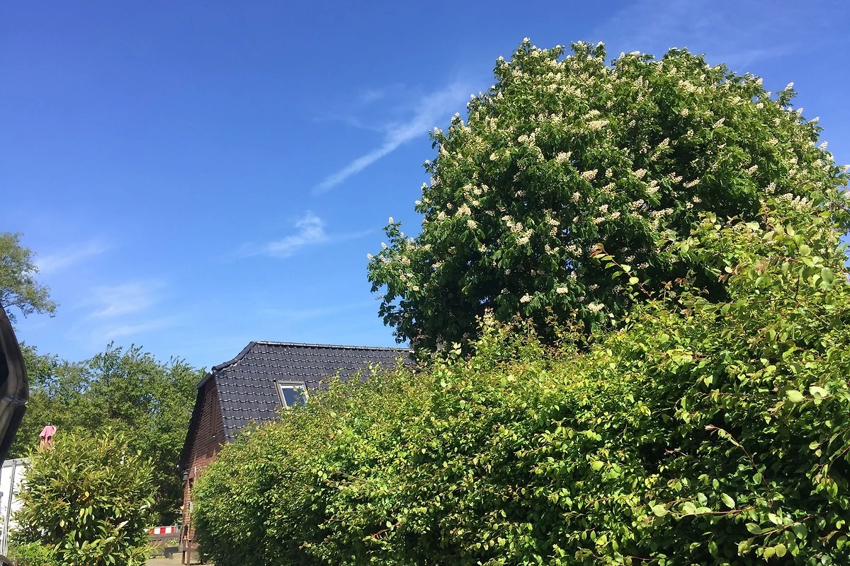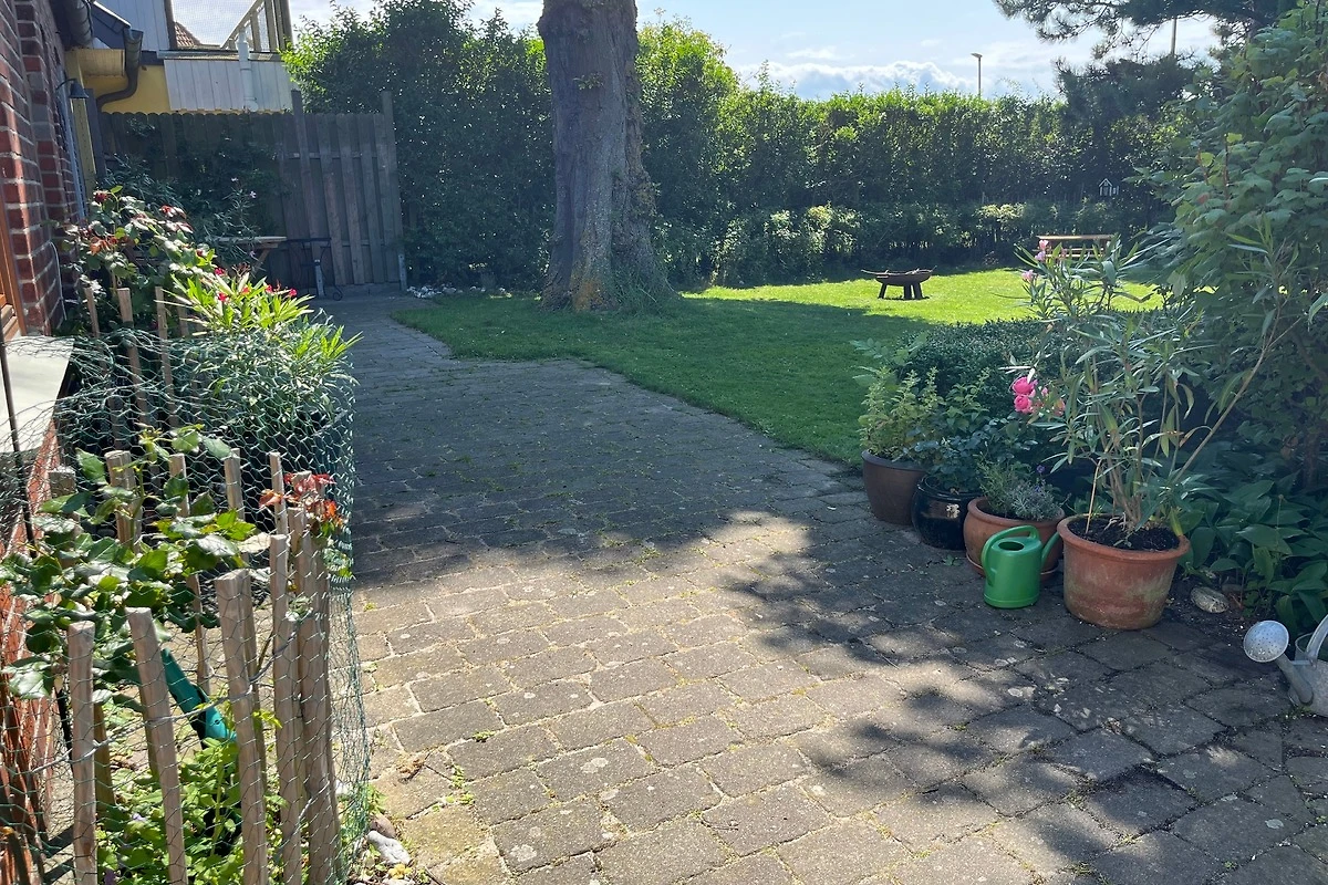 Der gepflegte Garten bietet viele Möglichkeiten für Jung und Alt und ist komplett ausgestattet mit Strandkorb, Gartenmöbeln, Sonnenschirm, Grill und Feuerschale.