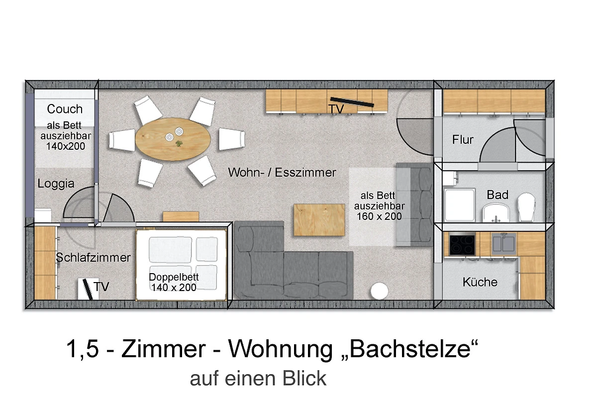 Wir empfehlen eine Belegung bis 4 Personen; Haustiere dürfen hier leider nicht mit.