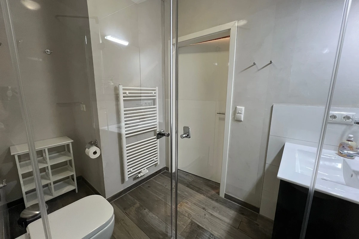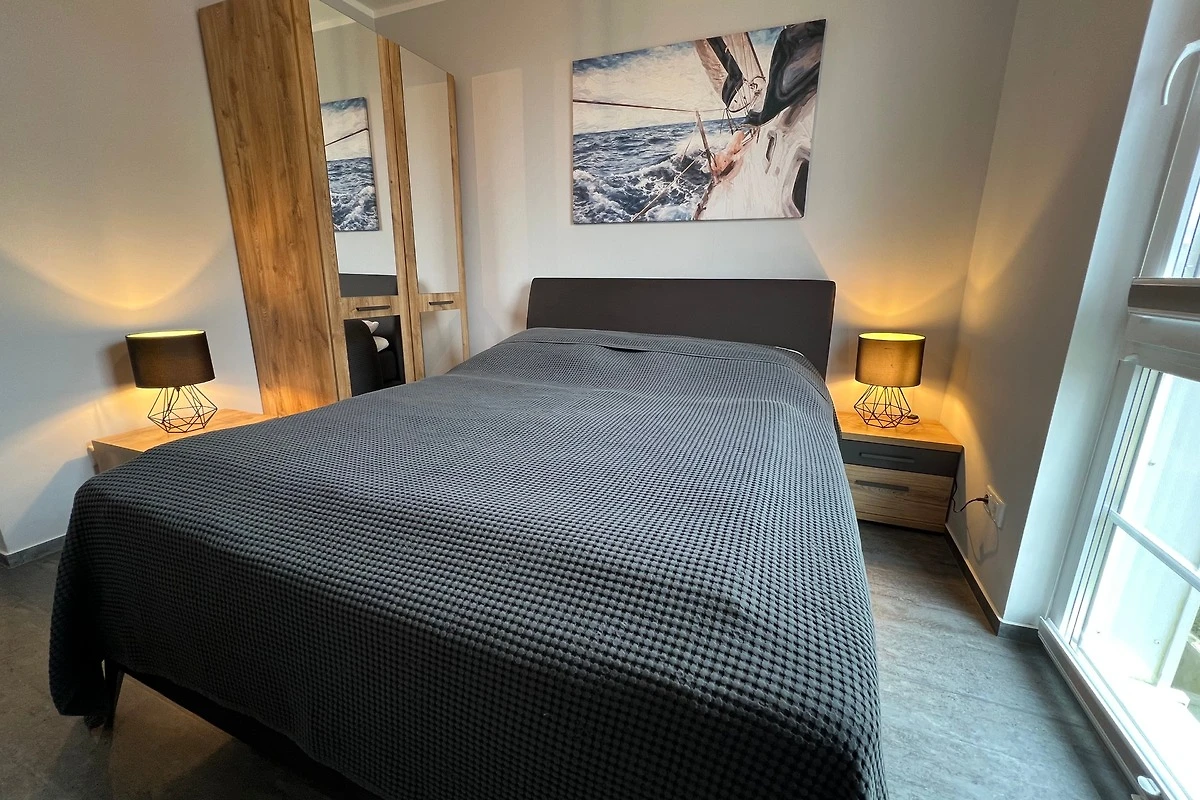 Die zwei Schlafzimmer sind mit jeweils einem Boxspringbett (180cm x 200cm und 160cm x 200cm) und einem Kleiderschrank für Ihre Garderobe ausgestattet. Ein zweiter Fernseher befindet sich in einem dieser Schlafräume.