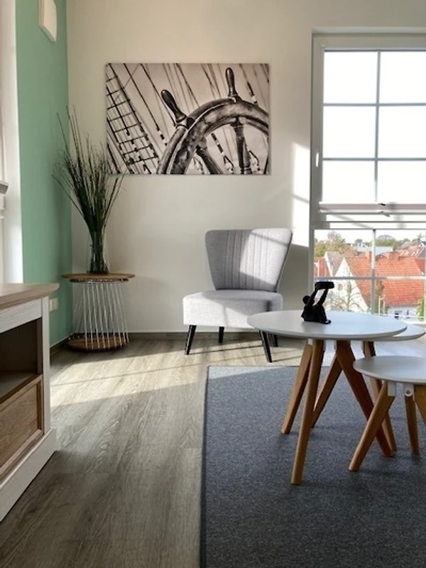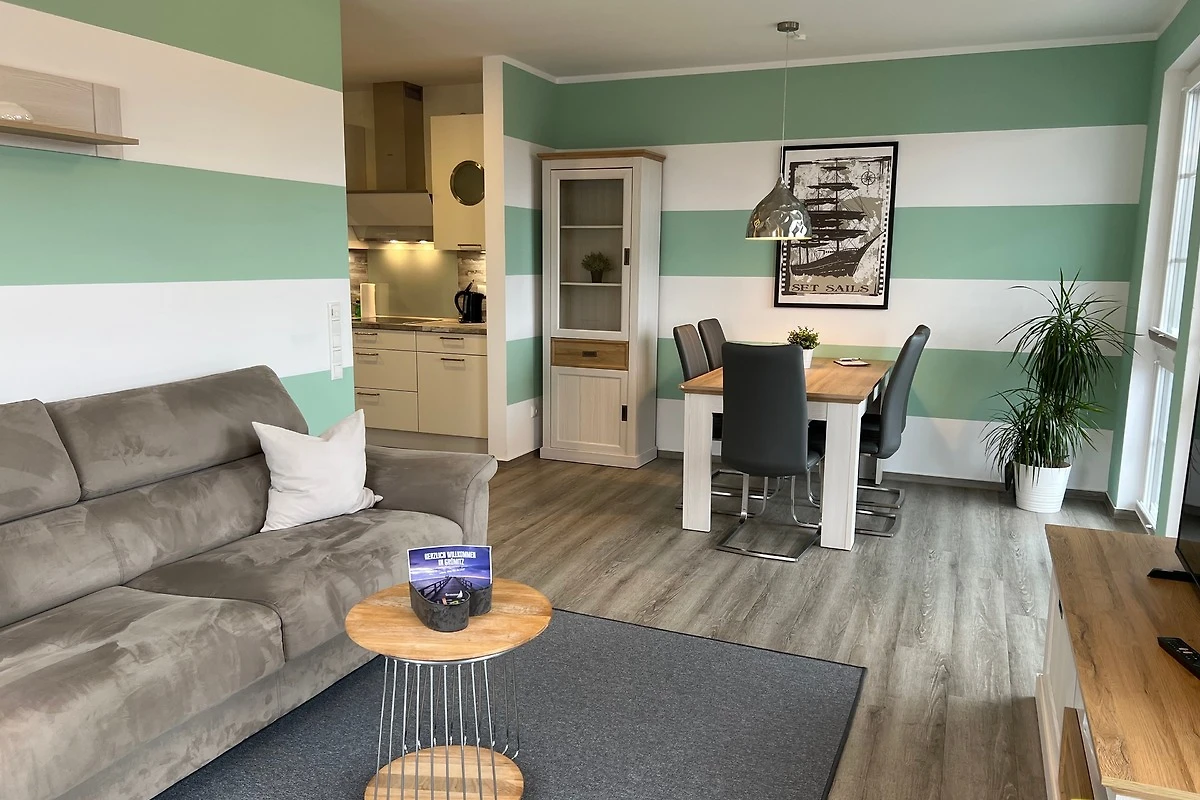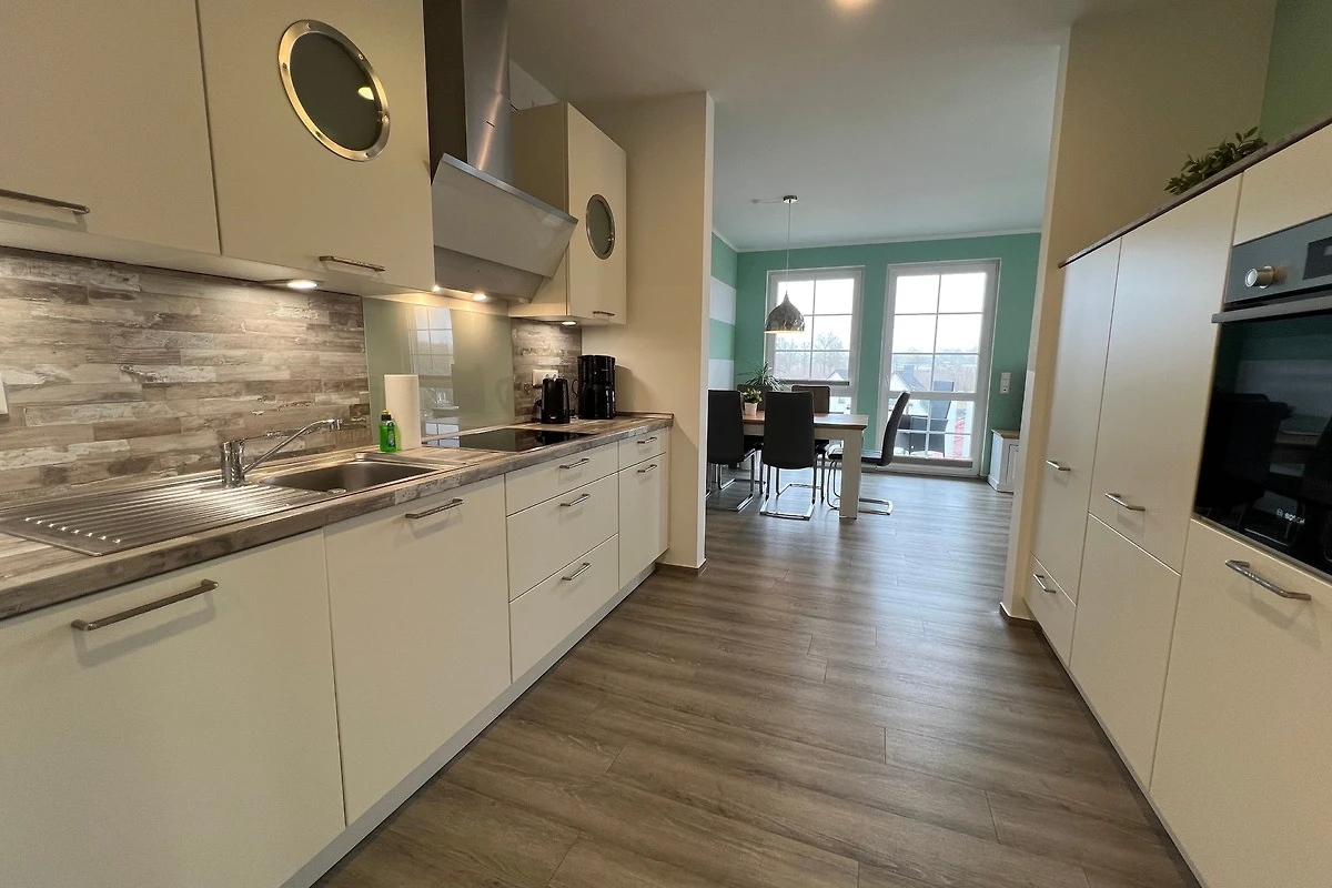 Es erwartet Sie ein helles und modernes Appartement in freundlichen Farben. Im grosszügigen Wohn-/Essbereich finden Sie eine voll ausgestattete moderne Einbauküche im maritimen Stil.