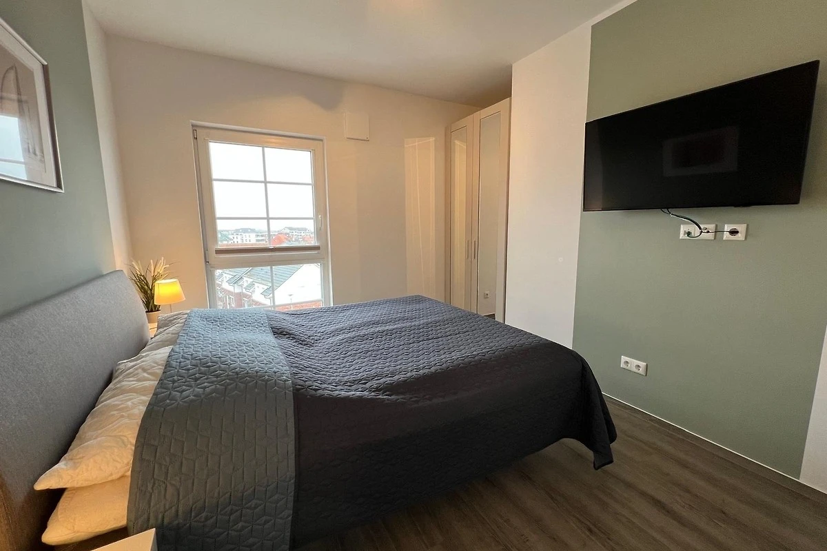 Die zwei separaten Schlafzimmer verfügen über ein 1,80 m und 1,60 m breites bequemes Boxspringbett sowie jeweils über einen grosszügigen Kleiderschrank. In einem der Schlafräume finden Sie einen zweiten Flachbildfernseher.
