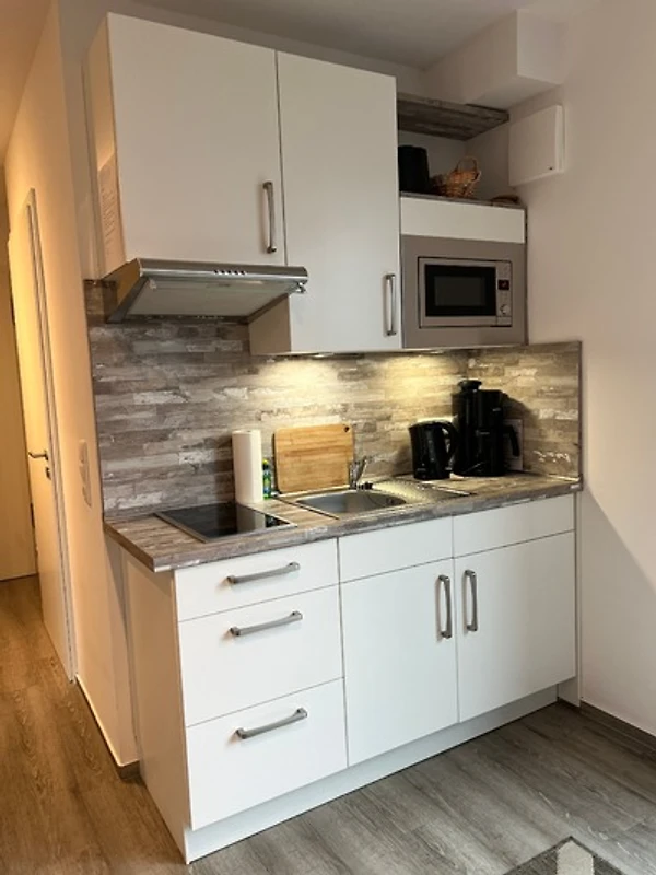 In der Küche finden sie neben einem Toaster ausserdem noch eine Kaffeemaschine und einen Wasserkocher.