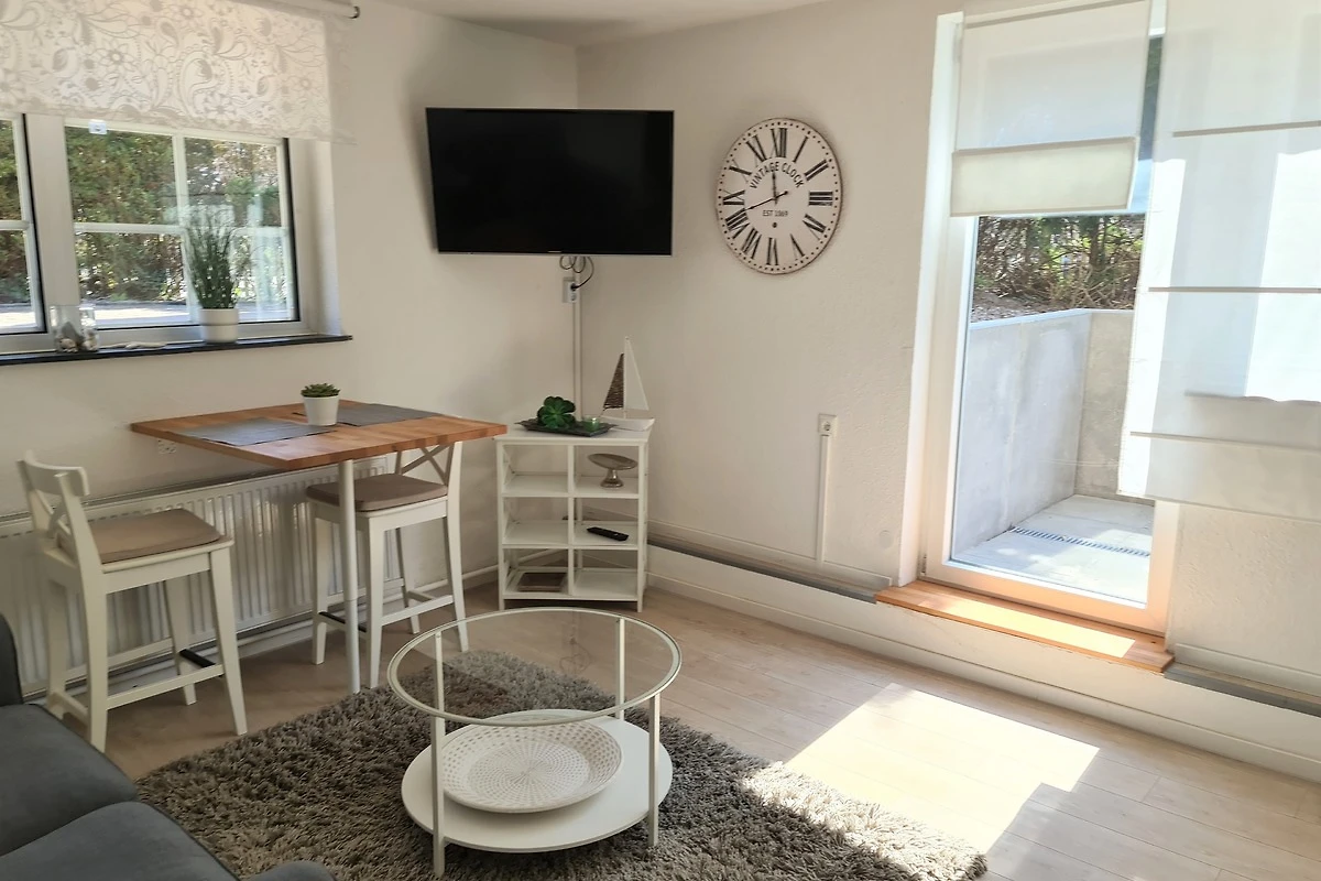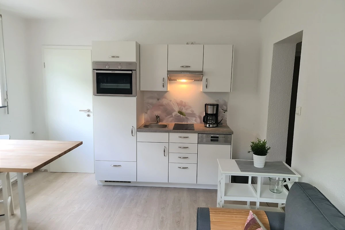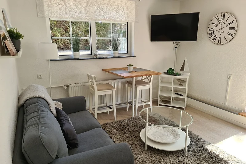 Im Wohnzimmer gibt es einen Esstisch für 2 Personen. Ausserdem steht Ihnen neben einer gemütlichen Couch zum Verweilen auch ein Smart-TV zur Verfügung. Angrenzend an den offenen Wohnbereich befindet sich die neue, voll ausgestattete Küchenzeile mit Geschirrspüler und allen Annehmlichkeiten.