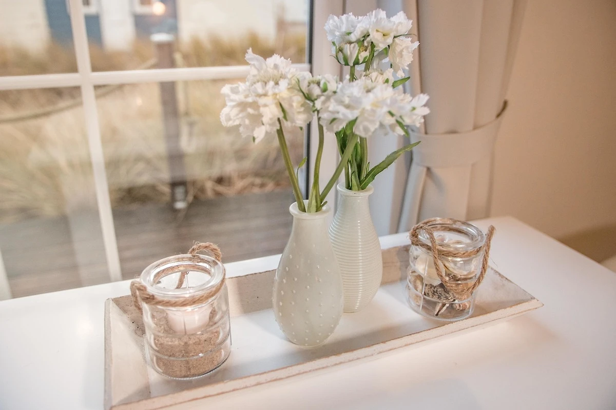 Schöne Ferienhäuser im skandinavischen Strandhaus-Stil mit einer maritimen Einrichtung, hellen Wohnräumen und grossen Fensterfronten. Alle Ferienhäuser verfügen über einen W-Lan-Internetzugang, Sat-TV, einem Zimmer-Safe, eine Gas-Heizung. Wir haben Nichtraucherhäuser, mit Terrassen mit Sitzmöbeln einem Grill, sowie einem Strandkorb am Haus. Pro Ferienhaus wird 1x Parkplatz reserviert.