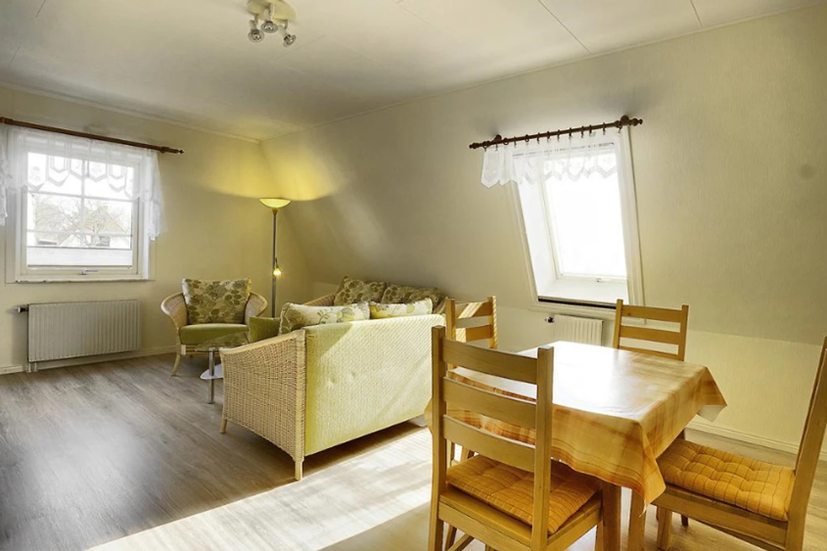 Wohnzimmer mit Couch zum Relaxen, Essplatz, Satelliten-TV, Radio, CD-Player, Insektenschutz