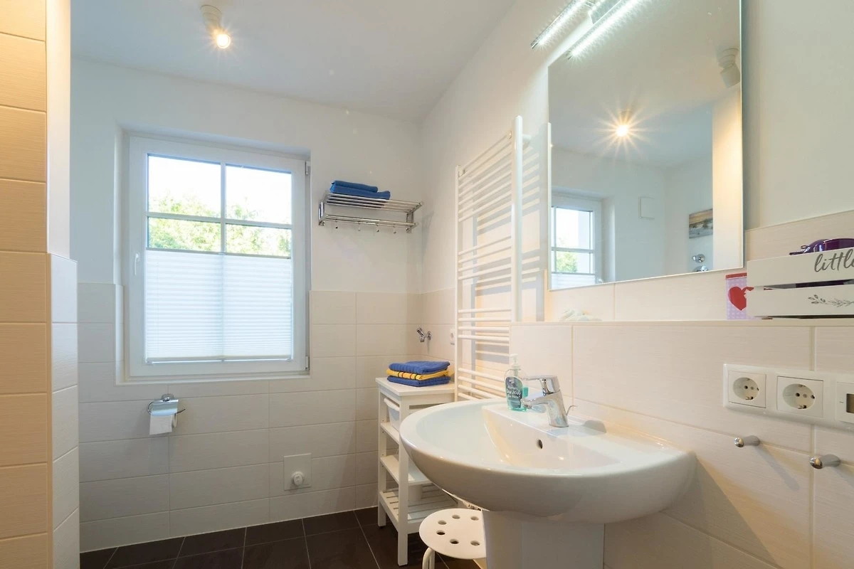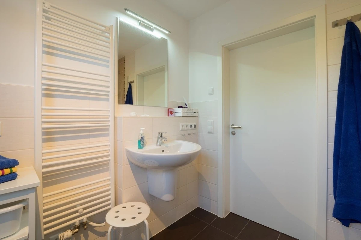 Unser modern eingerichtetes Badezimmer verfügt über eine grosse, bodengleiche Dusche mit einer traumhaften Kopfdusche für das pure Duschvergnügen.