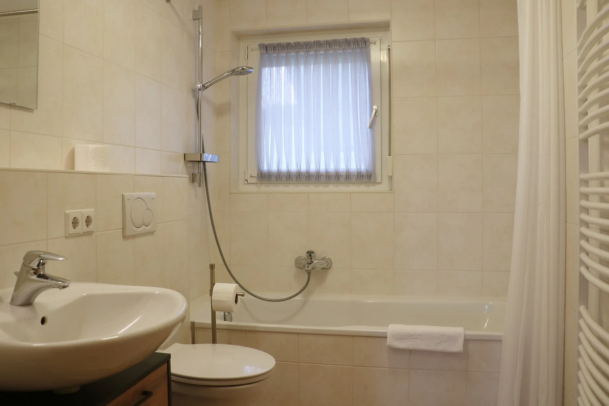 - 1 Badezimmer mit WC, Badewanne mit Dusche
