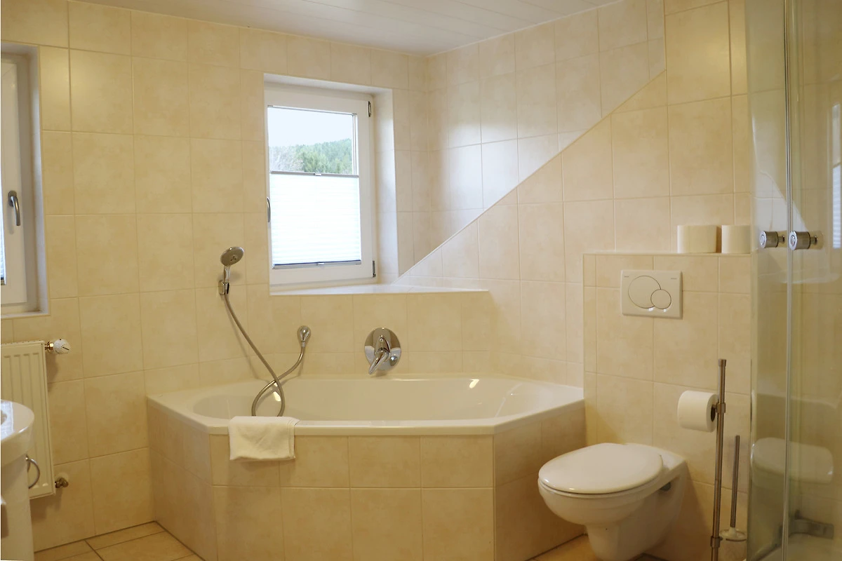 - 1 Badezimmer mit WC, Dusche und separater Badewanne