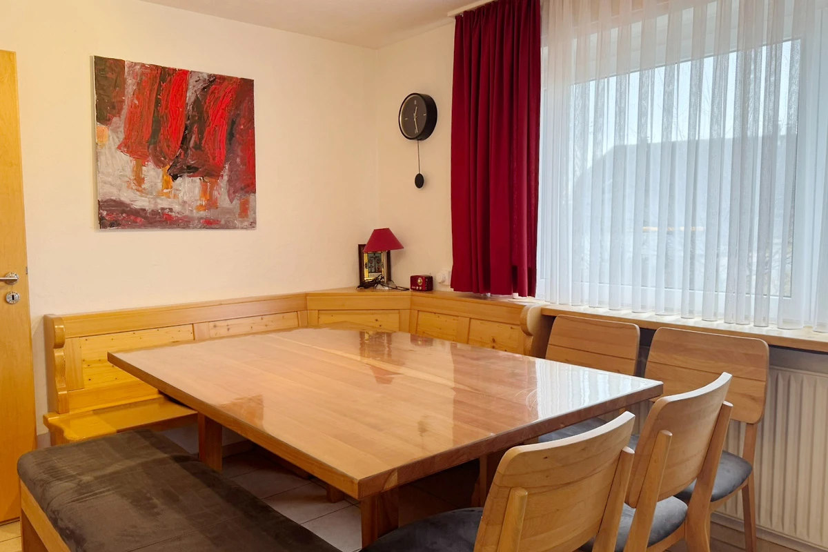 Your holiday home is located approx. 6 km south-east of Lake Schluchsee on the outskirts of Schönenbach, the smallest district of the municipality of Schluchsee. In an idyllic, secluded location, surrounded by meadows and forests, you have a fantastic distant view, on a clear day as far as the Swiss Alps. Tranquil sitting and resting corners in the garden, hiking trails, cycle paths and cross-country skiing tracks right on the doorstep, the Schluchsee lake with all its water sports facilities only a few minutes away by car, the skiing areas on the Feldberg mountain only 30 minutes away: something for everyone in every season!