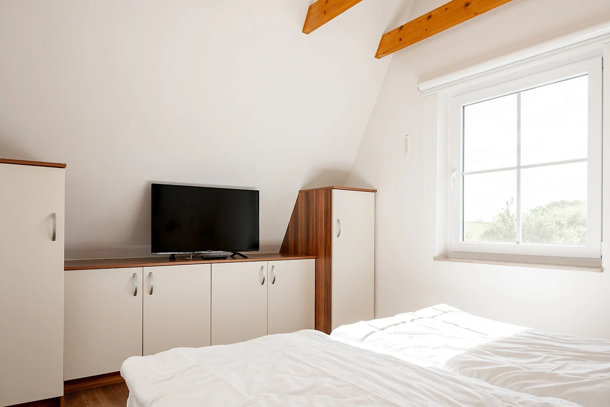 Willkommen in unserem Classic-Haus, das kinderfreundlich eingerichtet ist und mit einer Wohnfläche von etwa 80 m² ausreichend Platz für bis zu 4 Personen bietet. Die Unterkunft verfügt über zwei Badezimmer – eines mit Dusche im Erdgeschoss und eines mit Badewanne im Obergeschoss – sowie über einen Fön für zusätzlichen Komfort.