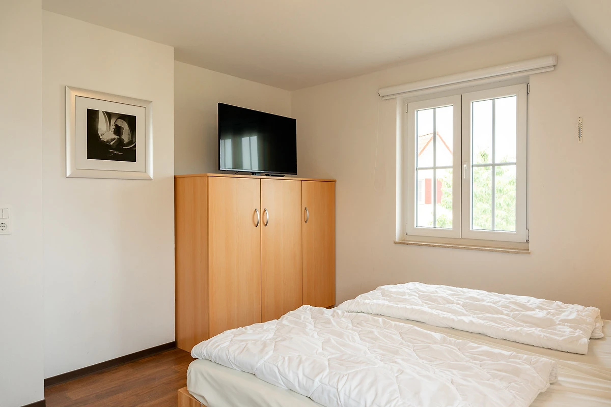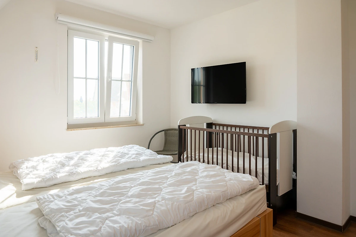 Mit einer grosszügigen Nutzfläche von etwa 135m² bietet es ausreichend Platz für bis zu 10 erwachsene Personen und ist ideal für Familien und Gruppen geeignet. Die Ausstattung lässt keine Wünsche offen und umfasst zwei Bäder – eins mit Dusche im Erdgeschoss und eins mit Wanne im Obergeschoss – sowie einen Fön für Ihre Bequemlichkeit.