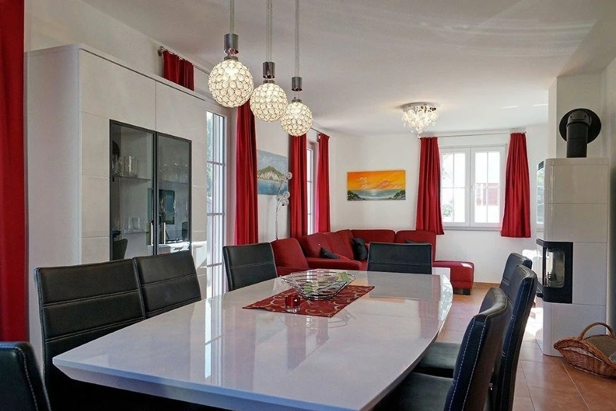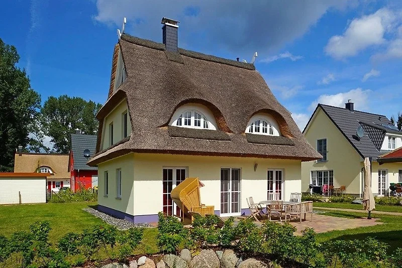Willkommen im zauberhaften Reetdachhaus "Stine", idyllisch gelegen nahe dem Ostseestrand in der neu errichteten Ferienhaus-Siedlung "Ostseepark Glowe". Dieses grosszügige Domizil bietet eine Wohnfläche von ca. 125 m² und ist liebevoll modern und familienfreundlich gestaltet. Im Erdgeschoss erwartet Sie ein grosszügiger Wohn- und Essbereich mit offener Küche sowie eine einladende Terrasse. Das Obergeschoss beherbergt drei Schlafzimmer mit insgesamt fünf Betten für Erwachsene und zusätzliche Aufbettungsmöglichkeiten für die Kleinen. Im gemütlichen Spitzboden befindet sich ein weiterer Wohn-/Schlafbereich mit drei Betten. Zwei hochwertige Bäder, eines im Erdgeschoss und eines im Dachgeschoss, stehen Ihnen während Ihres Aufenthalts zur Verfügung. Zur modernen Ausstattung gehören auch eine Sauna im Erdgeschoss, ein behaglicher Kamin, ein Kinderhochstuhl, Radio sowie ein LCD-Fernseher im Wohnzimmer und in den Schlafzimmern. Zudem stehen Ihnen zwei Parkplätze direkt auf dem Grundstück zur Verfügung. In unmittelbarer Nähe zum nur 8 Gehminuten entfernten Strand finden Sie tolle Spielplätze, die zum Klettern und Herumtollen einladen. Der lange Sandstrand lädt zum Spielen, Toben und Baden ein. Alle Nebenkosten sind inklusive, und die Sauna funktioniert mit einem Münzer. Willkommen in Ihrem Traumurlaub in Glowe!