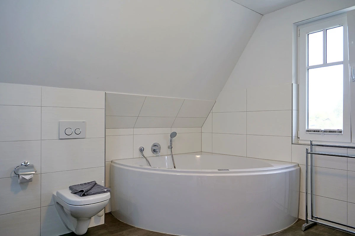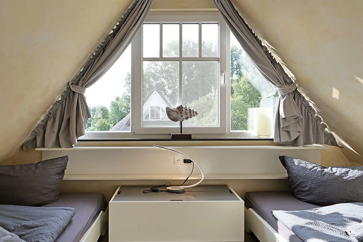 Der grosszügige Wohn- und Essbereich im komplett gefliesten Erdgeschoss lädt zum Verweilen ein und öffnet sich zu zwei angrenzenden Terrassen. Im Obergeschoss erwarten Sie drei Schlafzimmer mit Doppelbetten, während das ausgedehnte Dachgeschoss zwei weitere Schlafzimmer mit Einzelbetten und ein Gäste-WC bietet.