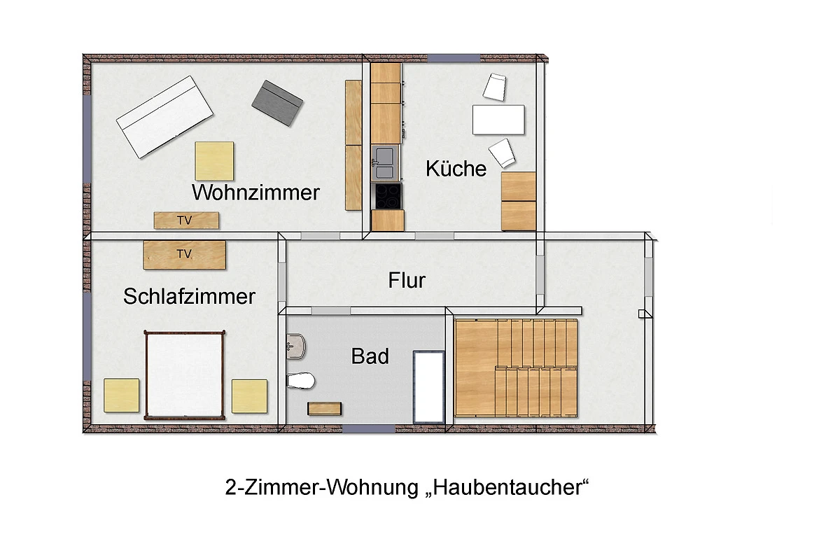 Diese schicke 2-Zimmer-Wohnung (Nichtraucher) befindet sich im 1. OG eines Einzelhauses und ist über eine Treppe zu erreichen. Mit einer Grundfläche von ca. 62 qm bietet Sie alles, was Sie für Ihren Wohlfühl-Urlaub am Meer brauchen.