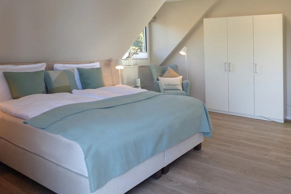 Zwei Schlafräume bieten Schreibtische und kleine, gemütliche Sitzecken, in die Sie sich nach persönlichem Bedarf zurückziehen können. Vom Balkonzimmer haben Sie Zugang zum grossen Balkon mit Sicht auf den Wohngarten und dem Wittensee. Für kuschelige Fernsehabende hängt der Sat-TV, LCD-Flachbildschirm, 106,07 cm, 42 Zoll, mit Netzverbindung in angenehmer Sichthöhe.