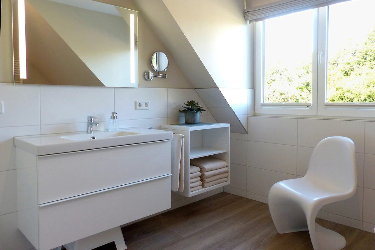 Flauschige Hand- und Badetücher und eine hochwertige Ausstattung; zahlreiche Handtuchhaken, Stauraum, Badematten, Kosmetikspiegel, Fön, sehr gute Beleuchtung, eine Erstausstattung an Kosmetikartikeln, Handtuchtrockner, Fussbodenheizung, Fliegengitter, Sichtschutzplissee und Raffrollo; erwarten Sie.