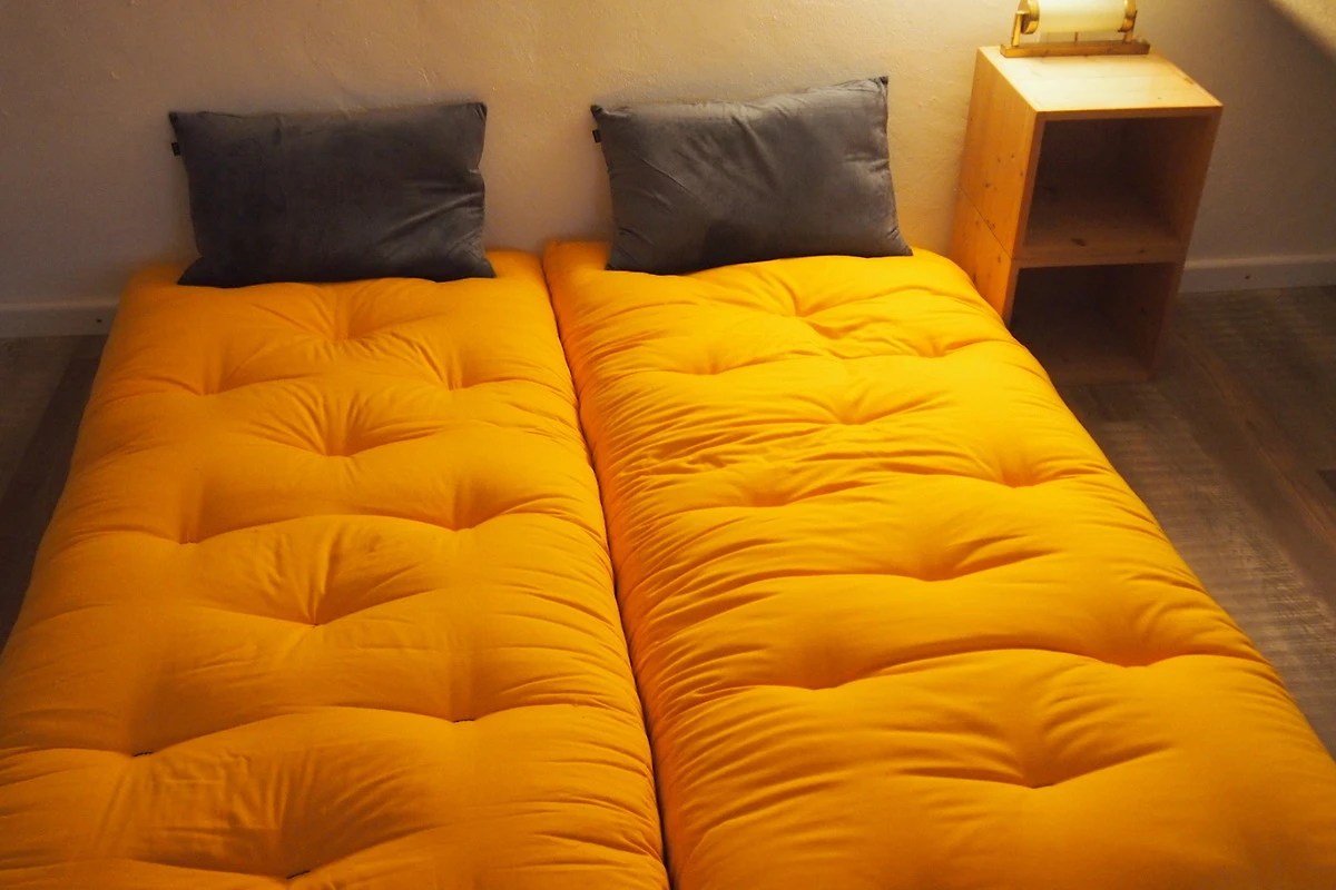 Treppenleiter, zwei neue Futons, Lampe, Sicherheitsnetz - schlafen wie im Zelt! (nur für Kinder über sechs oder sportliche Erwachsene)