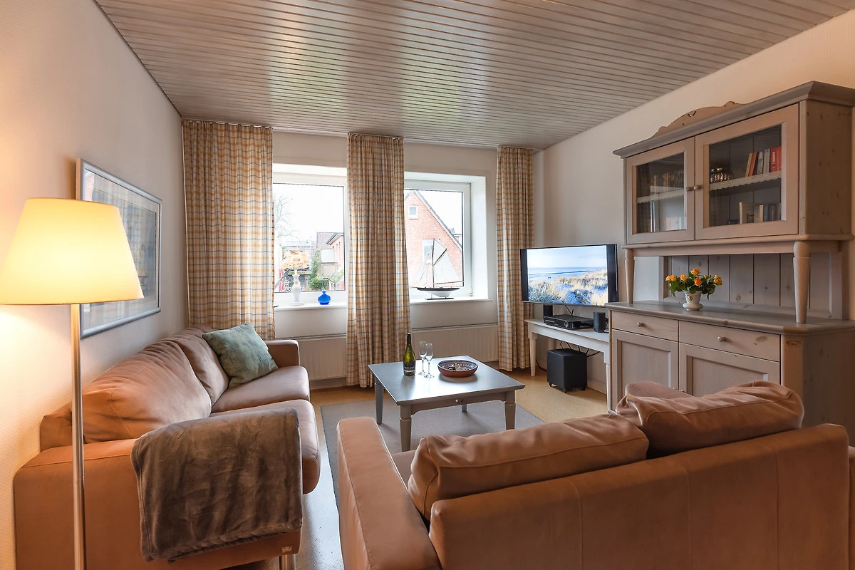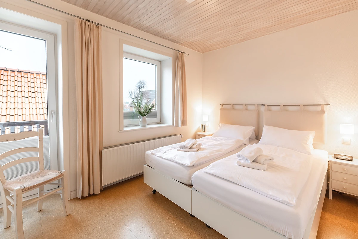 Die Wohnung "Sylt" im Haus in der Innenstadt befindet sich auf der ersten Etage und ist eine hervorragende Wahl für 2 bis 4 Personen. Die freundlich gestaltete Wohnung mit zwei Schlafzimmern, einem funktionalen Bad und einer sehr gut ausgestatteten Küche wird durch einen grosszügigen Balkon ergänzt, von dem aus Sie über die Dächer der Innenstadt schauen können. Geniessen Sie den Flair einer kleinen Inselstadt und erfreuen Sie sich an der zentralen Lage. Egal, ob Sie morgens schnell Brötchen holen, tagsüber mal eben vom Strand eine kurze Sonnenpause einlegen oder abends durch die Kneipen und Restaurants ziehen möchten... Sie befinden sich nach wenigen Schritten mitten im Geschehen. Ein eher seltener Luxus bei Wohnungen in der Innenstadt ist der wohnungseigene Parkplatz. In der selben Strasse finden Sie zudem einen Waschsalon. Ihre Fahrräder können bei den Fahrradständern auf dem Hof abgestellt werden. Wir freuen uns darauf, Sie bei uns begrüssen zu dürfen!
