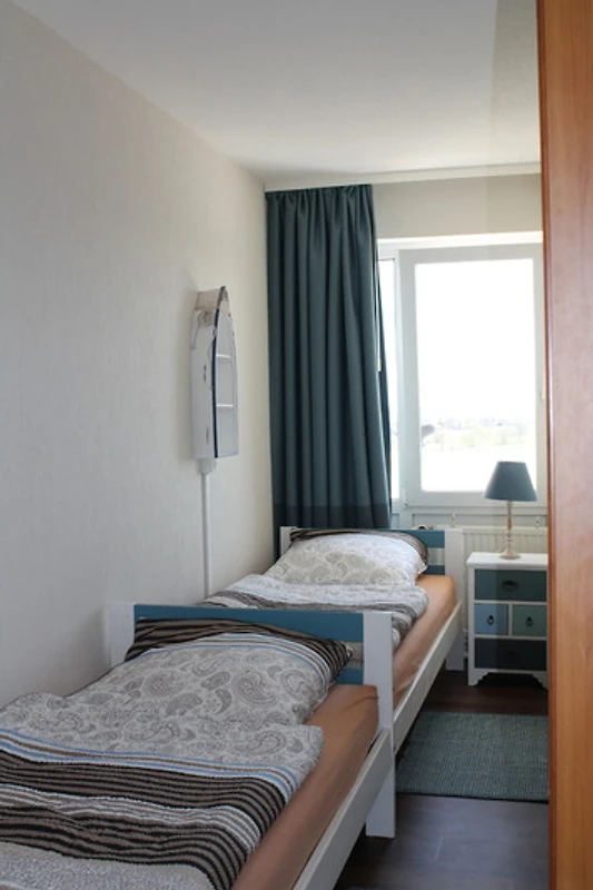 Im separaten Schlafzimmer befinden sich 2 Einzelbetten mit Nachttisch, ein Kleiderschrank mit Spiegel und Schubladen, sowie Unterbettkommoden. Für das mitgebrachte Reisegepäck ist somit ausreichend Platz vorhanden.