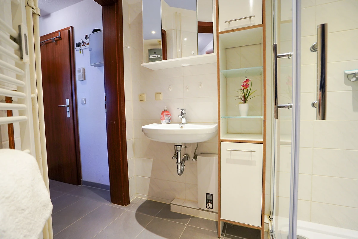 Ein Tiefgaragenstellplatz gehört zu Ihrem Feriendomizil dazu. Den Gästen des Hauses stehen Gemeinschaftswaschmaschine und -trockner zur Nutzung gegen Gebühr zur Verfügung.