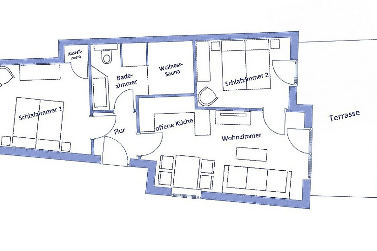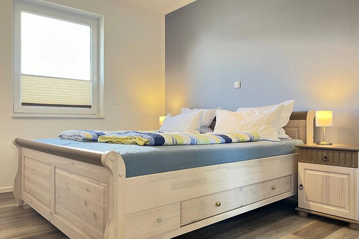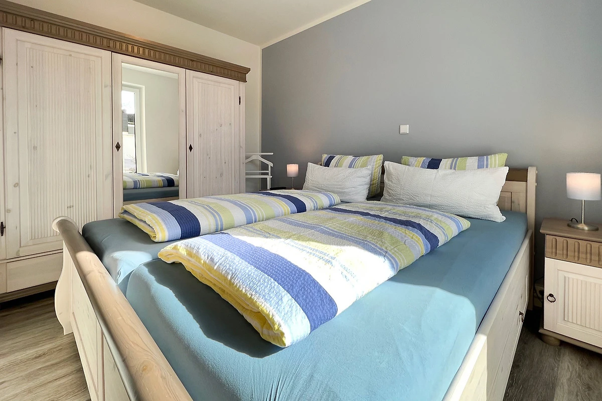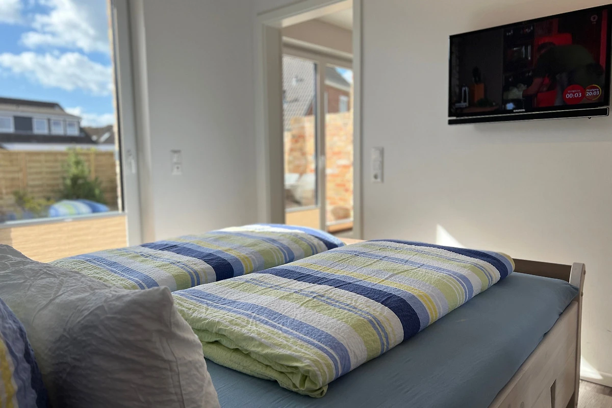 Beide Schlafzimmer sind mit einem Doppelbett, Schrank und einem Flachbild-TV ausgestattet. Aus dem 2. Schlafraum gelangt man direkt auf die 15 qm grosse Terrasse und beginnt den Tag mit belebender Ostsee-Sonne.