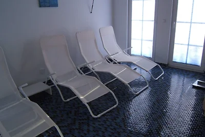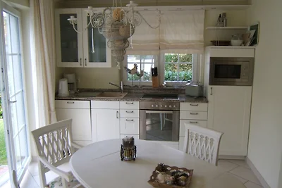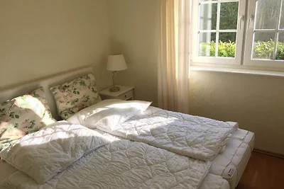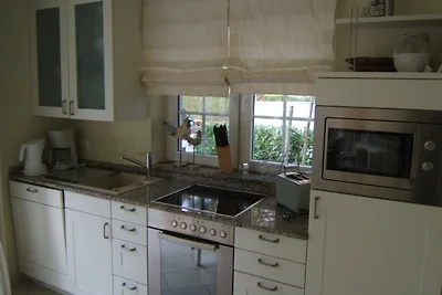 Unmittelbare Strandlage, KAMIN im Wohnzimmer, sonnige Südwest-Terrasse und eigener Gartenanteil, kostenlose SAUNA-Nutzung in attraktivem kleinen Saunahaus im Garten.