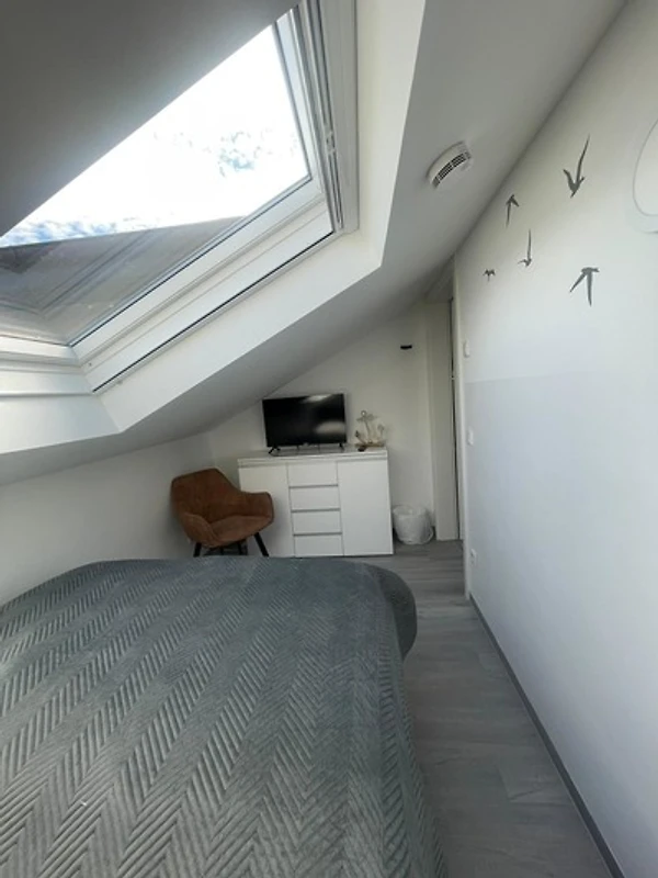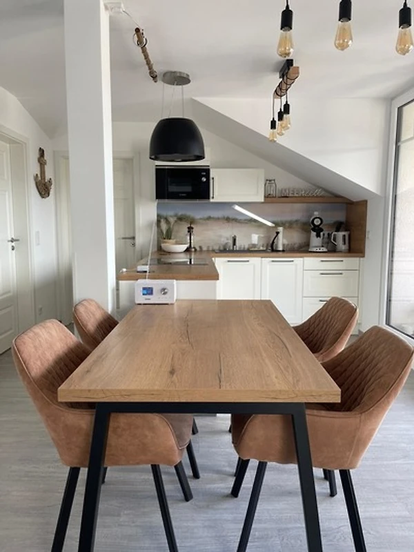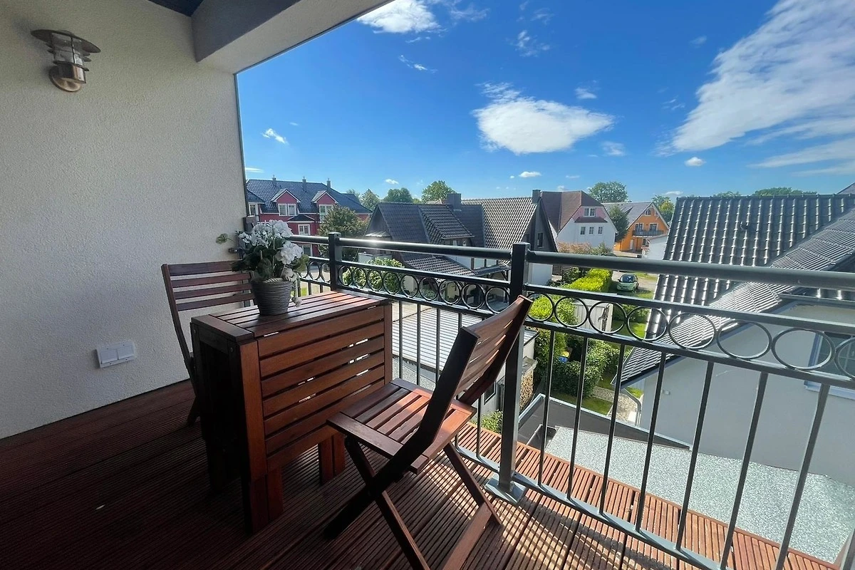 Direkt mit dem Fahrstuhl gelangen Sie in die moderne und liebevoll eingerichtete Ferienwohnung. Das helle und lichtdurchflutete Penthouse mit seinen ca. 75 m² verfügt über 2 Schlafzimmer, einen gemütlichen Wohnbereich mit offener Küche, einem modernen Bad und einem freundlichen Balkon. Ausserdem stehen den Gästen zwei hauseigene Parkplätze sowie ein Fahrradabstellraum zur Verfügung.