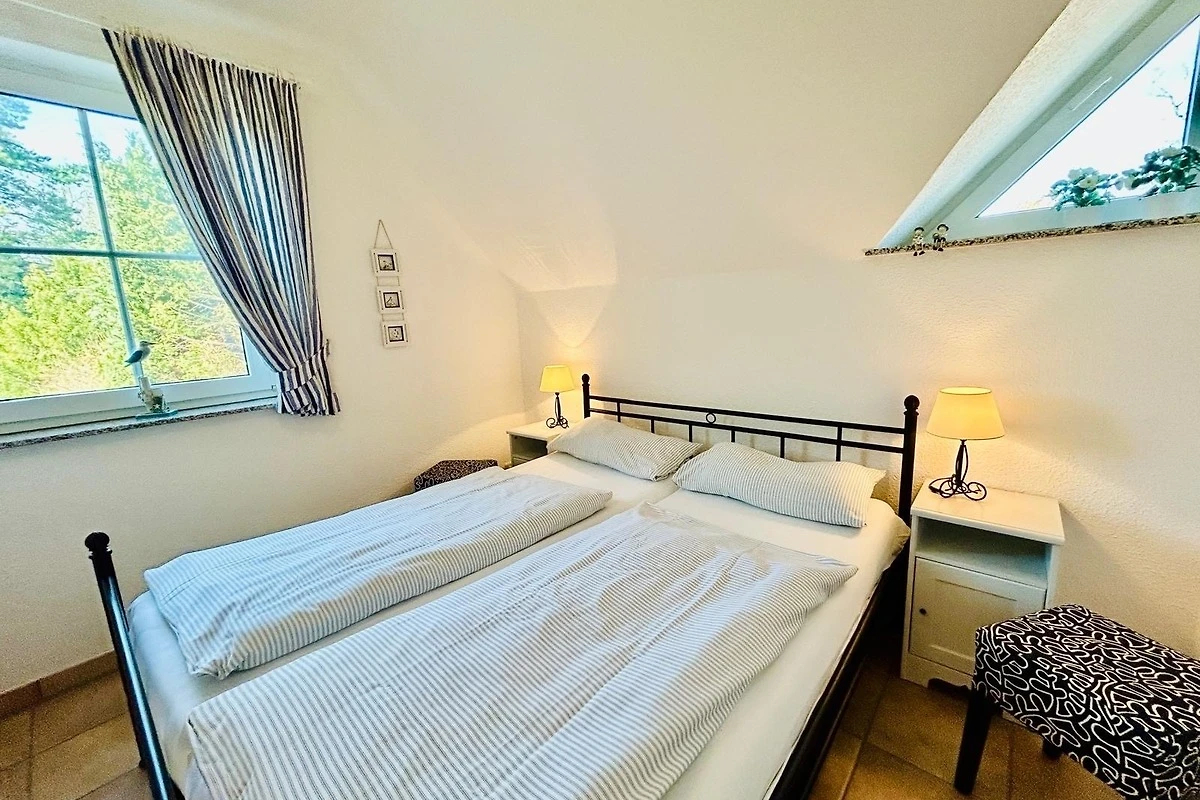 1 Schlafzimmer ist mit einem Doppelbett ausgestattet, das andere mit 2 Einzelbetten.