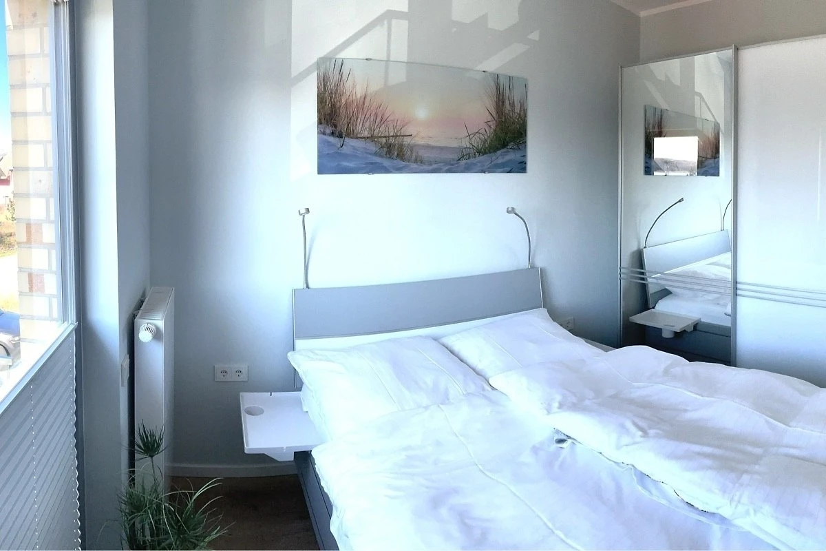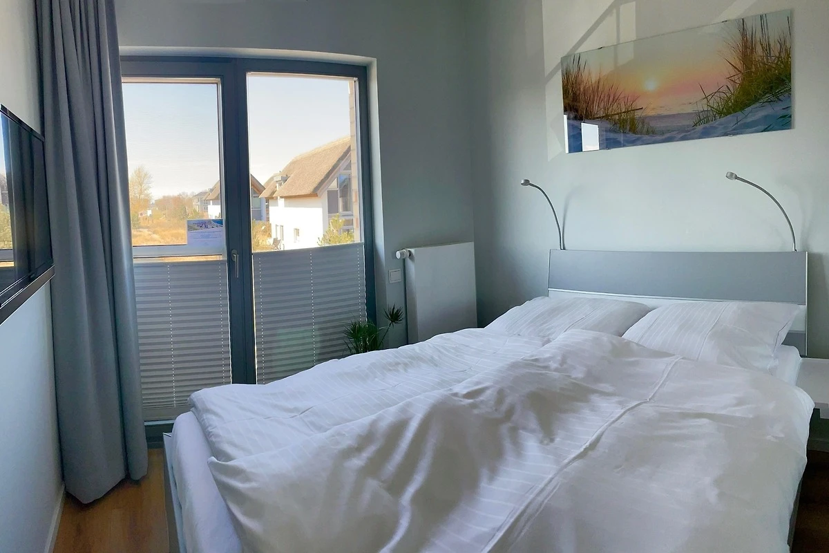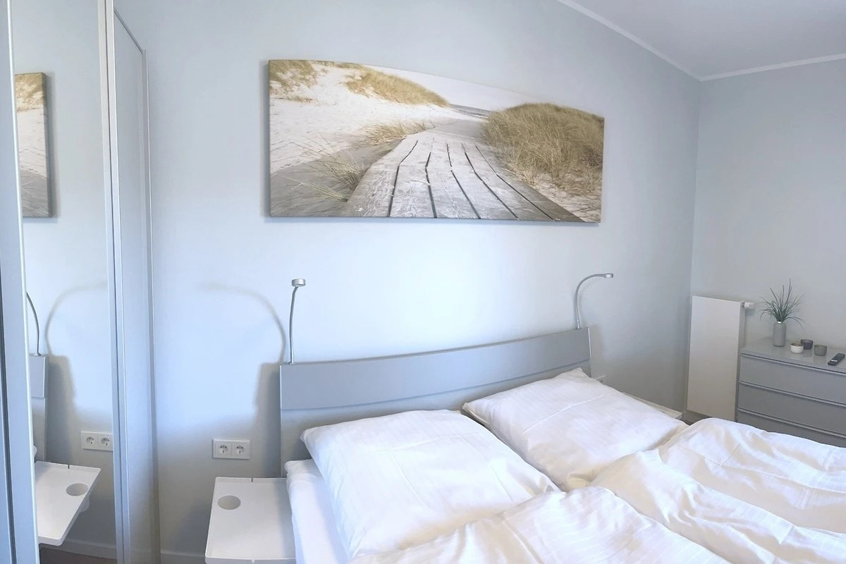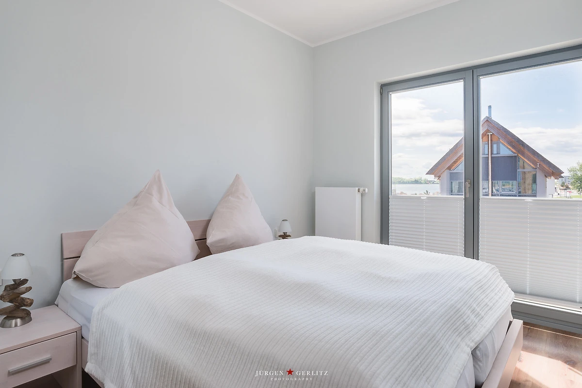 Ein weiteres Schlafzimmer mit einem Doppelbett (160x200cm), sowie ein kleineres Schlafzimmer mit einem französischen Bett (140x200cm) und angrenzendem kleinen Balkon runden die Schlafmöglichkeiten in der Wohnung ab. Aus diesen beiden Schlafräumen haben Sie einen schönen Blick auf den Binnensee und den Sonnenuntergang.