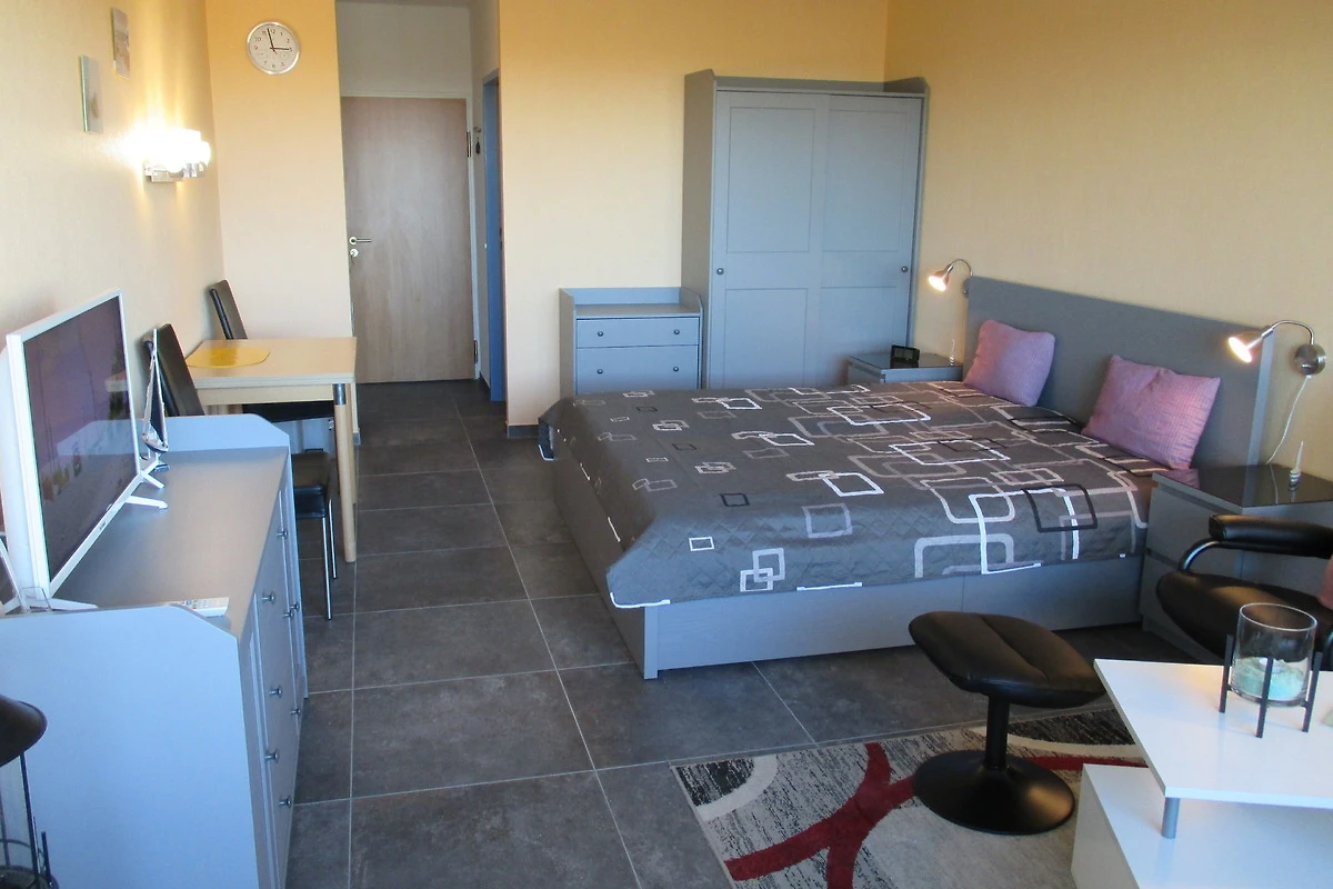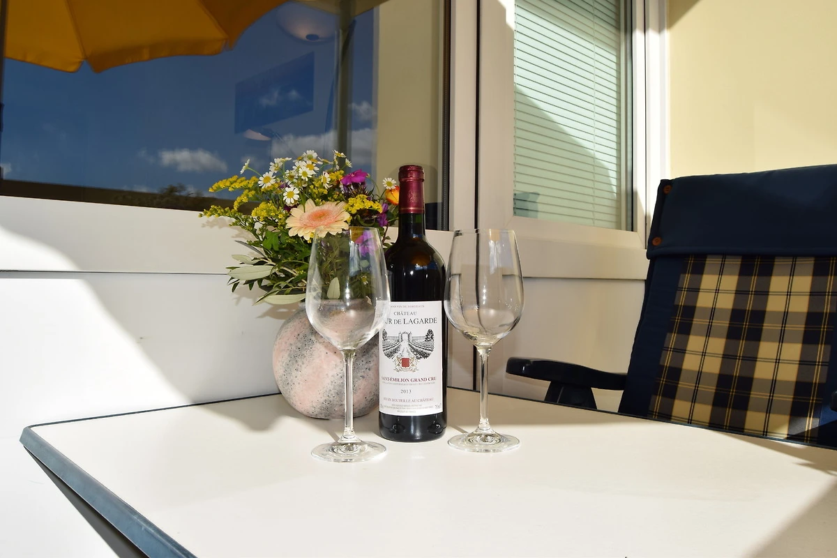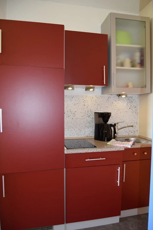 Das Appartement verfügt über ein geräumiges Bad mit Toilette, Waschbecken und Duschkabine sowie Zentralheizung und Fön. Die Küchenzeile verfügt über eine Spüle, zwei Kochplatten, einen Kühlschrank mit Gefrierfach sowie eine Mikrowelle. Der kombinierte Wohn-/Schlafraum hat einen geräumigen Kleiderschrank, ein Doppelbett mit zwei Matratzen, jeweils 90 x 200, einen Esstisch mit zwei Stühlen sowie gemütliche Fernsehsessel mit Hocker zum Entspannen. Technisch ist folgende Ausstattung vorhanden: 32 Zoll SMART-TV und Zentralheizung. Ins Internet gelangen Sie kostenlos im Appartement über WLAN, sofern Ihr mitgebrachtes Endgerät über WLAN verfügt. Balkonmöbel sind auf dem geräumigen, nach Osten ausgerichteten Balkon vorhanden. Auf dem gegenüberliegenden Parkplatz, der zur Appartementanlage gehört, finden Sie einen Stellplatz für Ihr Fahrzeug.
