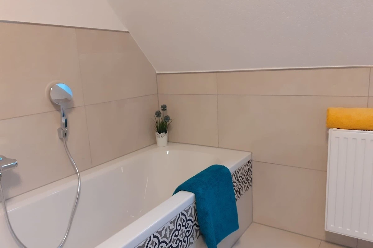 Auf Anfrage besteht auch die Möglichkeit den angrenzenden Garten z.B. für einen gemütlichen Grillabend zu nutzen. Unsere Küche ist gut eingerichtet und verfügt über einen Elektroherd mit Backofen, Kühlschrank und Gefrierfach. Ebenso vorhanden sind eine Spülmaschine, Mikrowelle, Toaster, Kaffeemaschine und Wasserkocher. Die Wohnung ist optimal geeignet für Familien mit drei ( bis vier) Kindern oder für zwei (drei) Paare. Eine Bushaltesstelle für die Stadtbuslinie und ein Getränkemarkt befinden sich in der Nähe des Hauses. Der Stadtbus verkehrt stündlich. Papenburg ist eine grüne Stadt, in der das Radfahren sehr attraktiv und zum Erkunden der Stadt gut geeignet ist. Fahrräder können auf Anfrage gestellt werden. Wir möchten Sie darauf hinweisen, dass Haustiere und Rauchen in der Wohnung nicht gestattet sind.