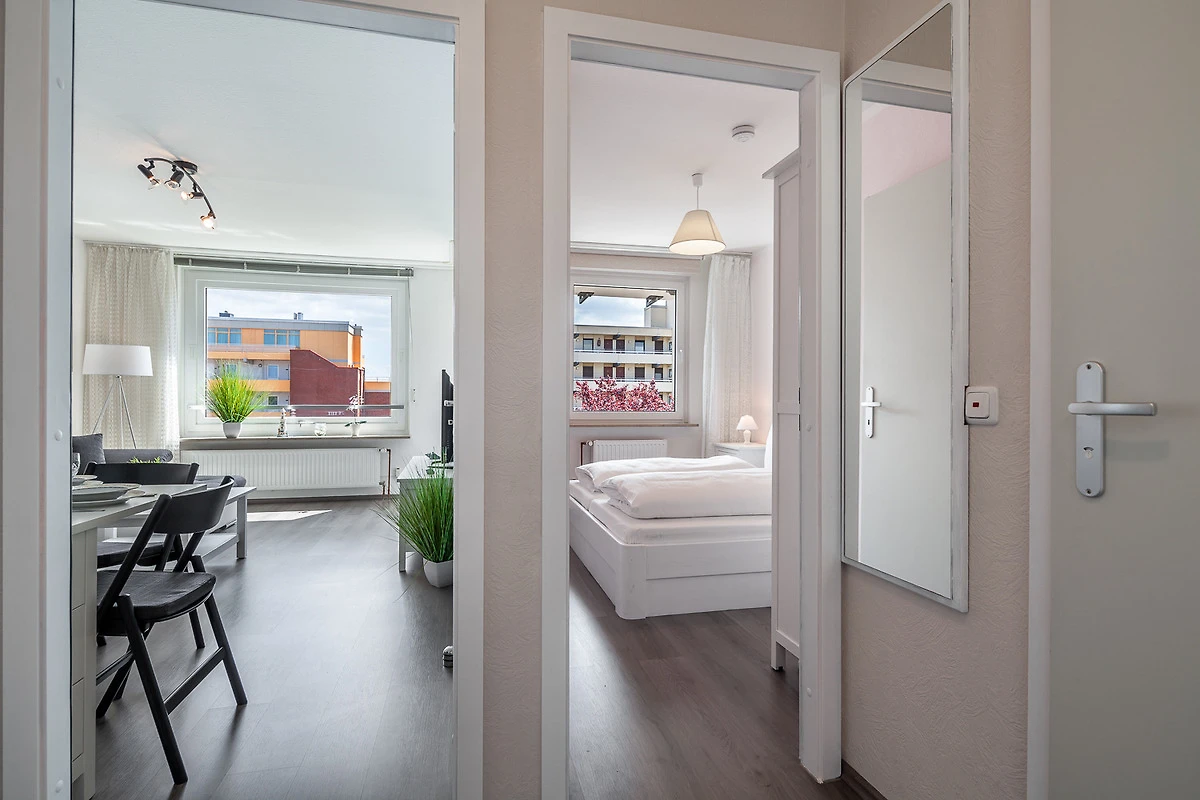 Diese 2-Zimmer-Ferienwohnung befindet sich im 2. Stock des Appartmenthauses Wiking. Die Wohnung erreichen Sie bequem mit dem Fahrstuhl.