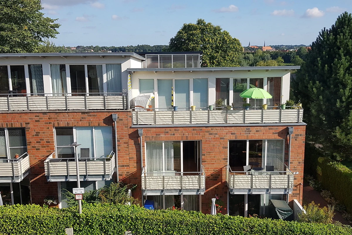 Die Wohnung befindet sich im Staffelgeschoss (weisser Bereich auf dem Hausfoto). Kein Ferienwohnhaus, Baujahr 2004.