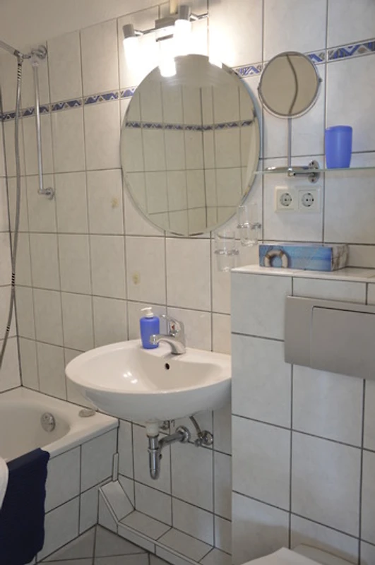 Unser Badezimmer ist mit Badewanne und kombinierter Dusche ausgestattet. Handtuchwärmer und Föhn sind ebenfalls vorhanden.