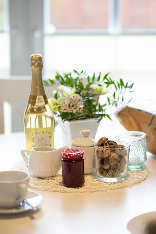 Im Hauswirtschaftsraum finden Sie Trockner und Waschmaschine zur Mitbenutzung (kostenpflichtig). Brötchenservice ist vor Ort buchbar, tägliche Umbestellung möglich. Grills und Feuerkörbe sind vorhanden sowie Abstellmöglichkeiten für Fahrräder.