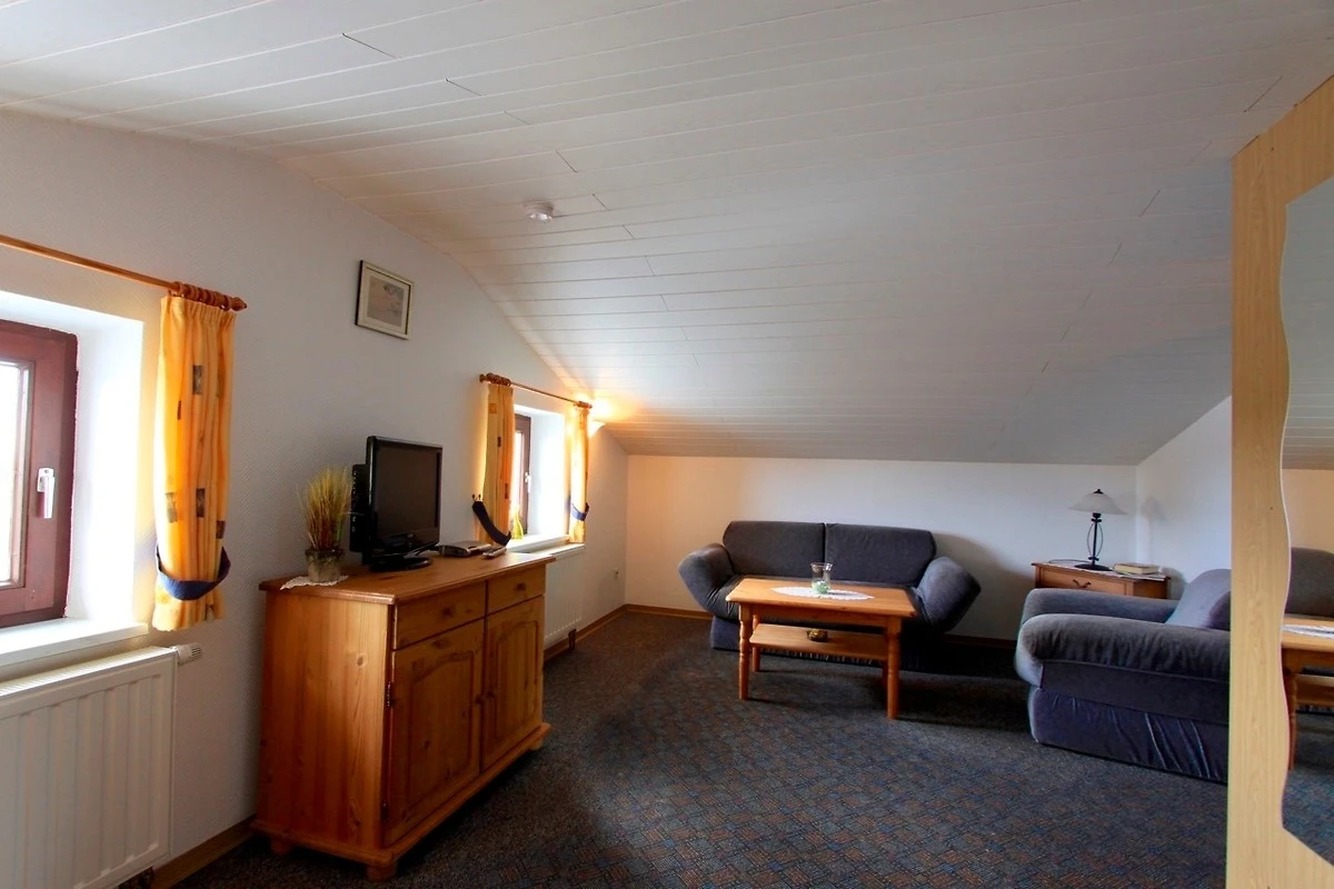 Sehr geehrte Damen und Herren, die Ferienwohnung, die wir für den Zeitraum von 14 Tagen bezogen hatten, ist von der Fläche her gesehen schon groß genug. Diese Fläche wird jedoch durch schräge Decken von drei Seiten her um ca. 50 % eingeschränkt und dadurch nur mit Mühe nutzbar. Wir sind mit 1,65 m Körpergröße nun nicht besonders groß. Für größere Urlauber wird es schwierig bis sehr schwierig in dieser Wohnung 14 Tage lang auszuhalten.