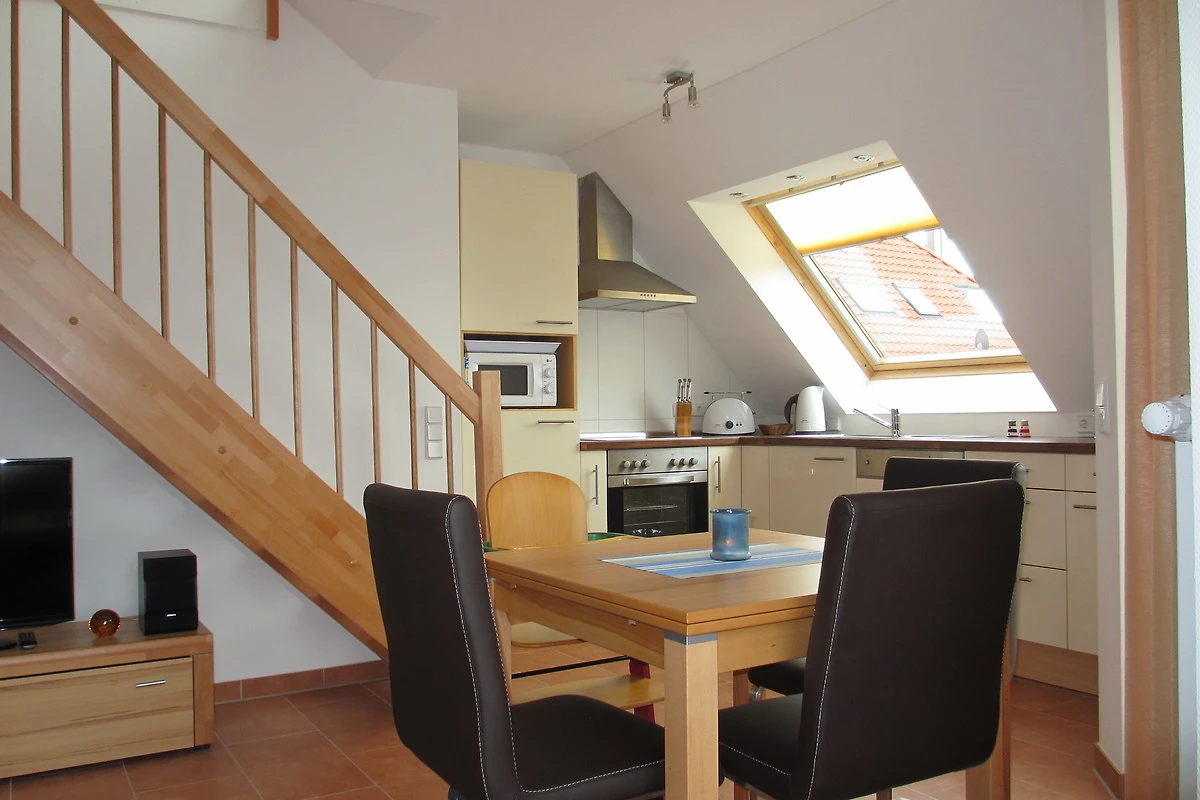 vom Wohnraum aus gelangen Sie über die Treppe in die Galerie