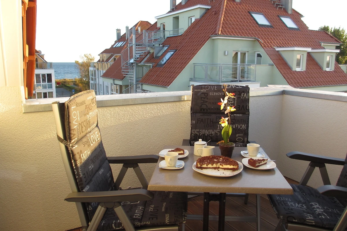 Auf unserer gemütlichen Dachterrasse können Sie wind- und sichtgeschützt die Sonne von morgens bis abends geniessen. Von hier aus haben Sie einen traumhaften Ausblick auf die Ostsee.