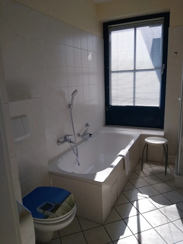 Im hellen Badezimmer (5,7m²) befindet sich das WC mit Waschbecken, eine Dusche sowie eine Badewanne. Ebenfalls vorhanden ist ein Haartrockner und genügend Stauraum für Ihre Kosmetikartikel.