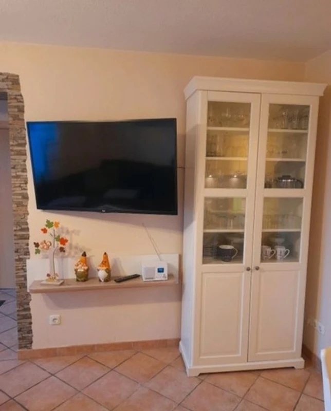 Zusätzlich steht Ihnen eine Waschmaschine im Bad zur Verfügung. Ein Wäscheständer ermöglicht das Trocknen der Wäsche, auf Wunsch ist eine Trocknerbenutzung selbstverständlich möglich. Ebenso steht für Sie ein Bügelbrett mit Bügeleisen bereit.