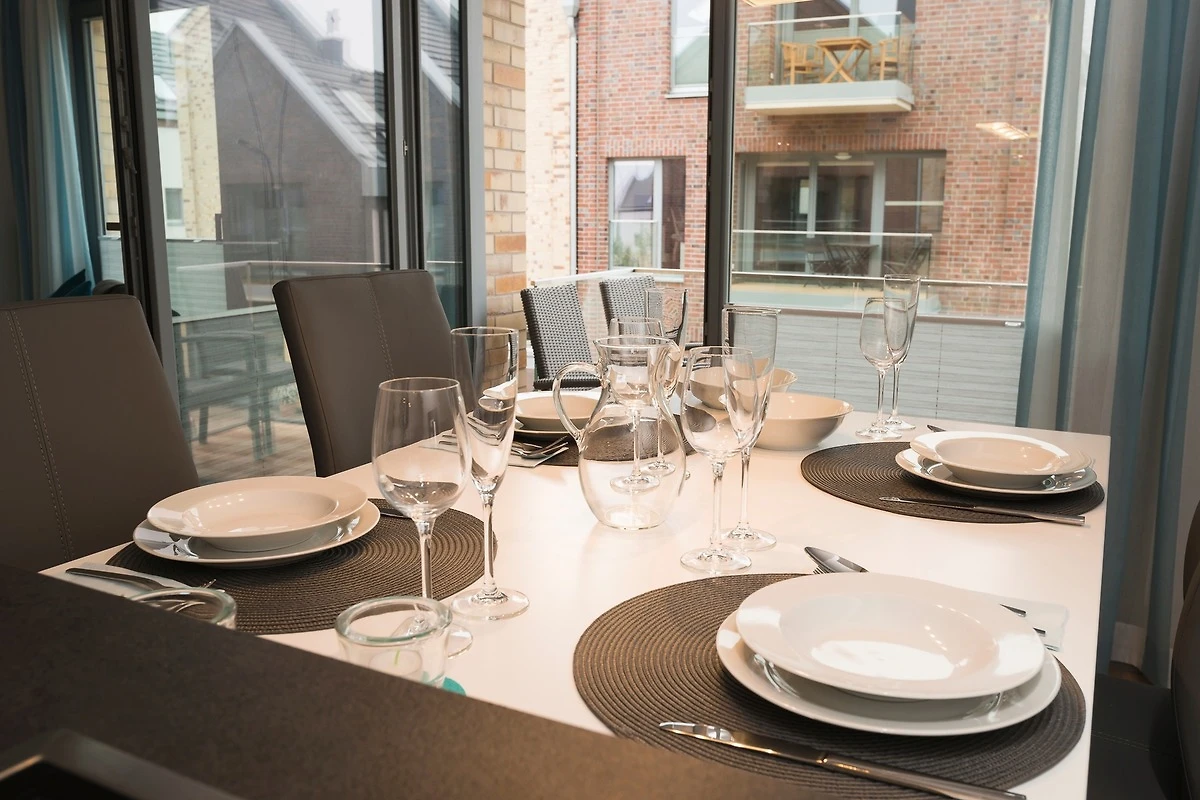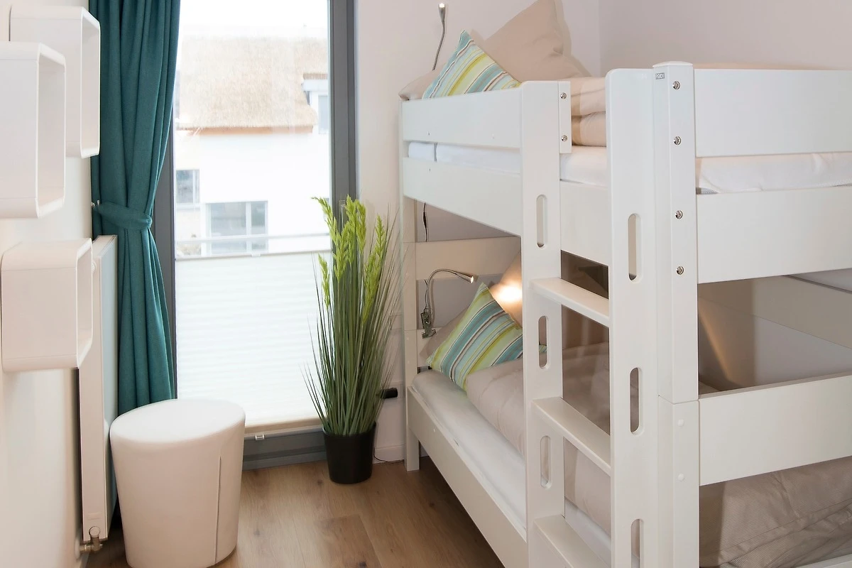 The stylishly furnished holiday apartment comprises of a bedroom with a double bed (box spring bed), a smaller bedroom with a bunk bed as well as a spacious living-dining room. The kitchen is fully equipped and also has a dishwasher and microwave. In the living room and bedroom there is a Smart TV each. The high-quality facilities also include a CD and DVD player, a fireplace as well as free Wi-Fi.
