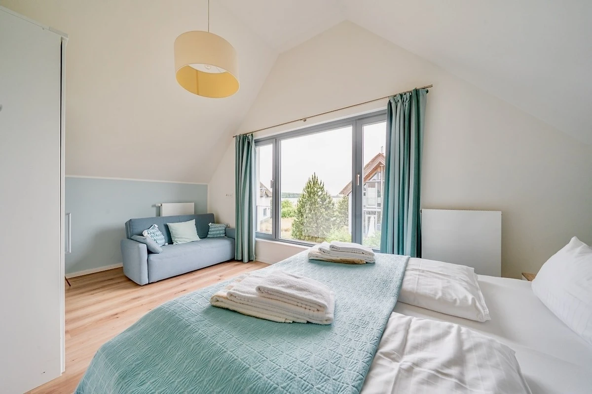 Neben dem Strand ist auch der Yachthafen fussläufig in einer Minute zu erreichen und lädt zum Flanieren ein. Ein grosszügiger Spielplatz ist ebenfalls in direkter Nähe. Heiligenhafen mit seinen Gässchen, Restaurants und Freizeitangeboten befindet sich nur 10 Minuten zu Fuss entfernt.